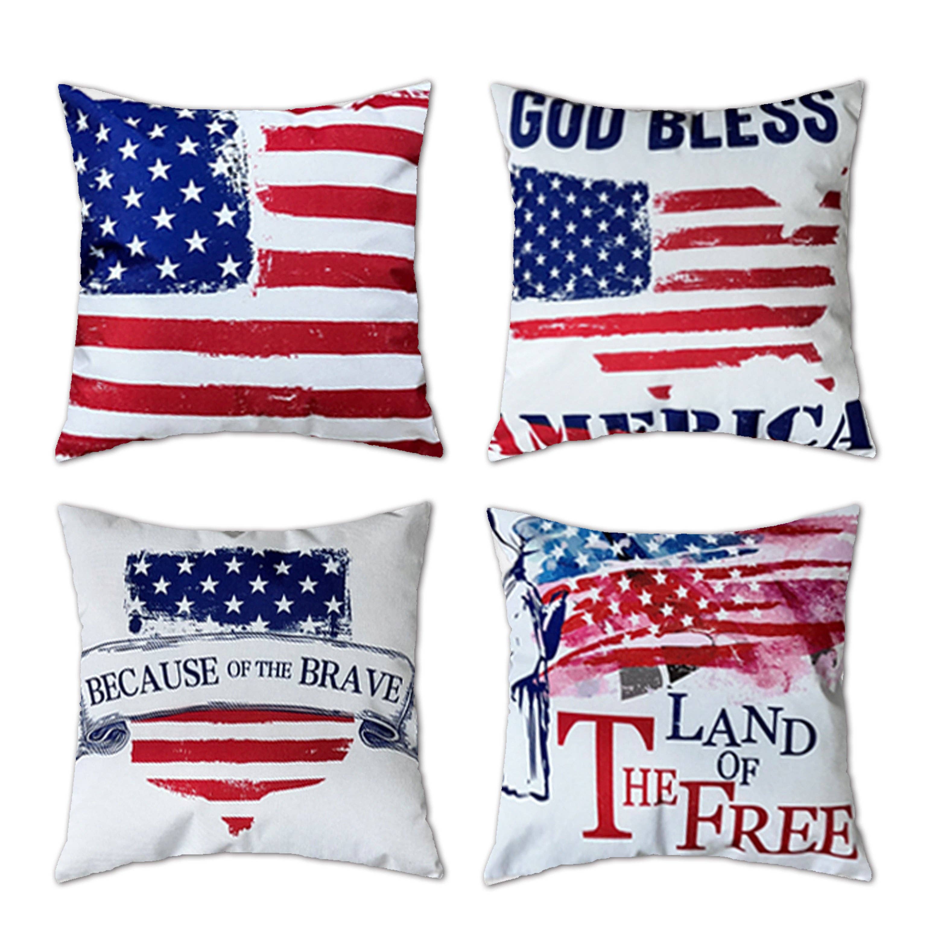 Show your patriotic pride! Original designs for throw pillows! Change the look of tired old pillows with a beautiful woven linen pillow cover. Super soft polyester linen with a hidden zipper will make pillows totally nap worthy! Many trendy and original designs to choose from. Throw pillows are like grownup stuffed animals! You can never have too many!! Colors may differ slightly than what is presented on a screen. Designed, printed, and pressed in the USA Pillow cover size: 18x18 inches. Machine washable (wash cold, tumble dry medium). Hidden zipper Pillow base color is light beige Use a 18" or 20" pillow insert. Inserts not included