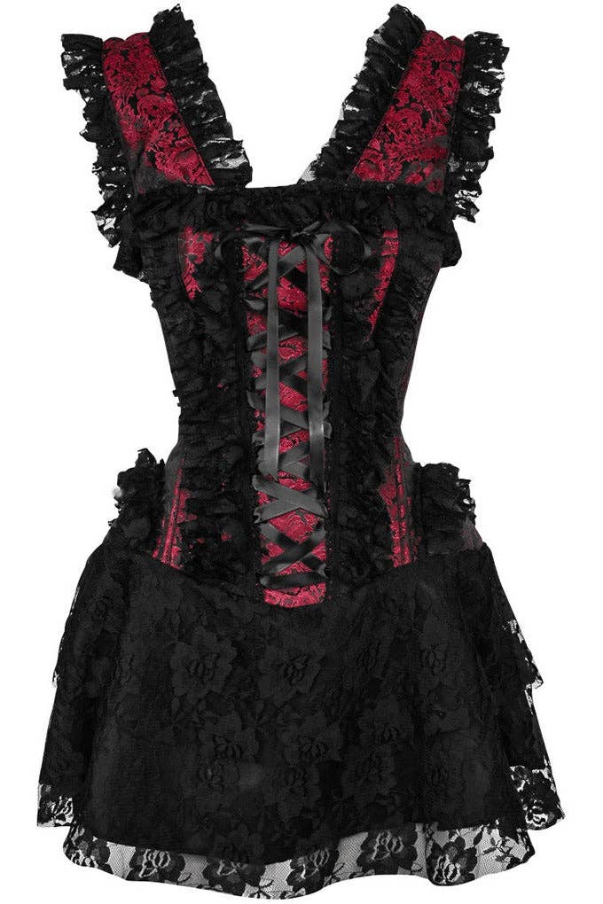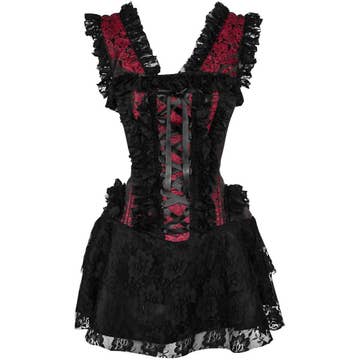 A collage of vintage Poison Labels and skeleton bones * Cotton/Lace * Long-bodied tee * Lace trim along front neckline and hem * Adjustable stretch straps * Handmade * Made by Se7en Deadly