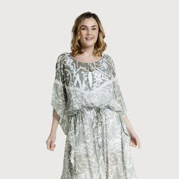 SKU: KT-20.1 Made in India Aesthetic: Bohemian and Casual Care Instructions: Machine wash Fabric: 100% Cupro Fit: Contemporary Occasion Theme: Everyday Occasion: Day Party and Resort / Vacation Pattern: Tie-dyed Season: Pre-Fall Sleeve Length: 3/4 Sleeve Product Language: English Weight: 272.16 g (9.6 oz) Dimensions: 134.6 cm (53 in) Product Materials: Plastic-free, Recycled, and Vegan Packaging: Recycled Production: Ethically sourced and Fair trade
