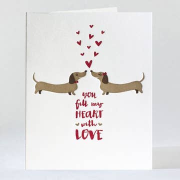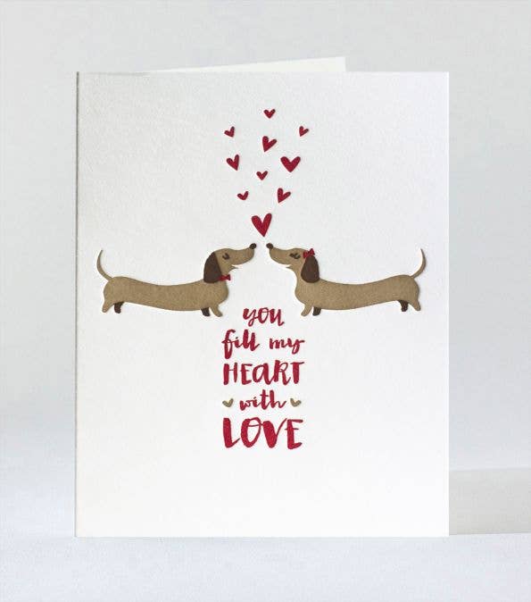 This cute I’m A Wiener card is not only for the dachshund and dog lover, but for anyone who wants to share their love in a fun way. Card reads "I'm a Wiener because I Got you." Dog art wraps around back of card. Perfect for Valentine's Day! - A2 size (4.25x5.5 inches, when folded) - Blank inside - Printed in Queens, New York City - Printed on 100% recycled paper (matte/smooth Mohawk paper, Made in the USA - visible fibers may occur) - Neenah eco-friendly ”Desert Storm” envelope is made of 30% recycled paper (Sustainably made in the USA) - Packed in a compostable PLA sleeve - Every order plants a tree!