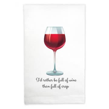 Prescription Wine Flour Sack Towel. This whimsical, generously sized flour sack towel is made from 100% cotton and is machine washable. Measuring 27" x 27" these well made towels are lint free, absorbent and perfect for drying glassware or dishes. Each comes with its own card header, barcoded and ready to display. The Prescription Wine Flour Sack Towel adds a little fun to your kitchen!