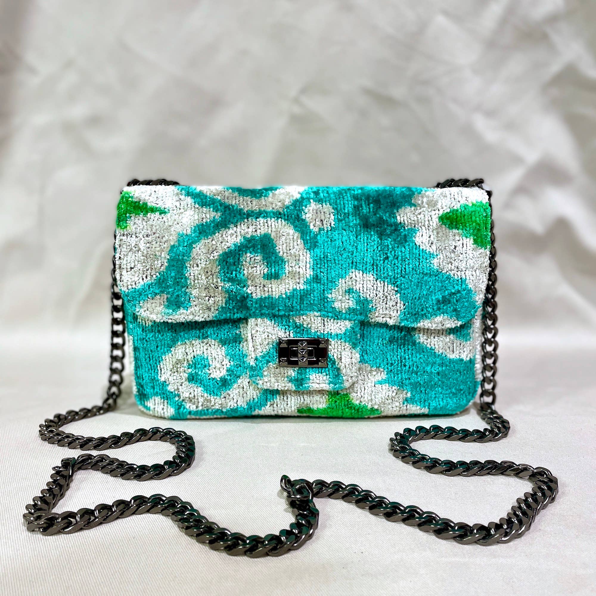 Velvet Ikat Cushion Green Planet | Velvet Ikat Pillow Green Planet