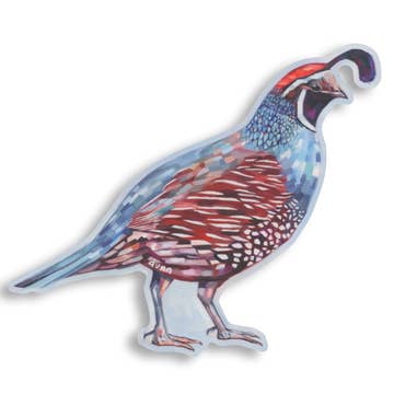 A California Quail vinyl sticker adapted from an original oil painting. Waterproof, UV resistant, dishwasher safe & made in USA. Size options: 3.5 x 3.5 inches 5.5 x 5.5 inches 8.5 x 8.5 inches Material: high quality vinyl