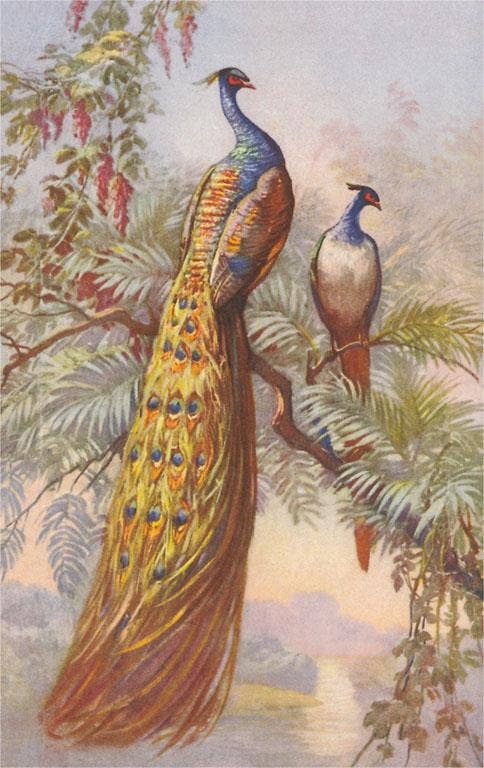 Vintage Styled Peacock Art Prints Wall Decor Parchment Paper