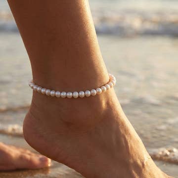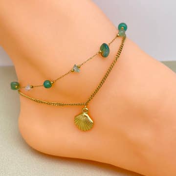 If there is one place in the world to pick the perfect beach house, it’s in Laguna Beach. And what beach outfit is complete without the perfect matching anklet? MATERIALS Amazonite and white Mother of Pearl beads on 9” gold wire finished with gold-filled spring ring closure Every stone is unique, which means that each bracelet is too. You can expect your jewelry to be one of a kind, since each bead has natural variations.