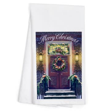 Santa Claus is Coming to Custom Town Tea Towel