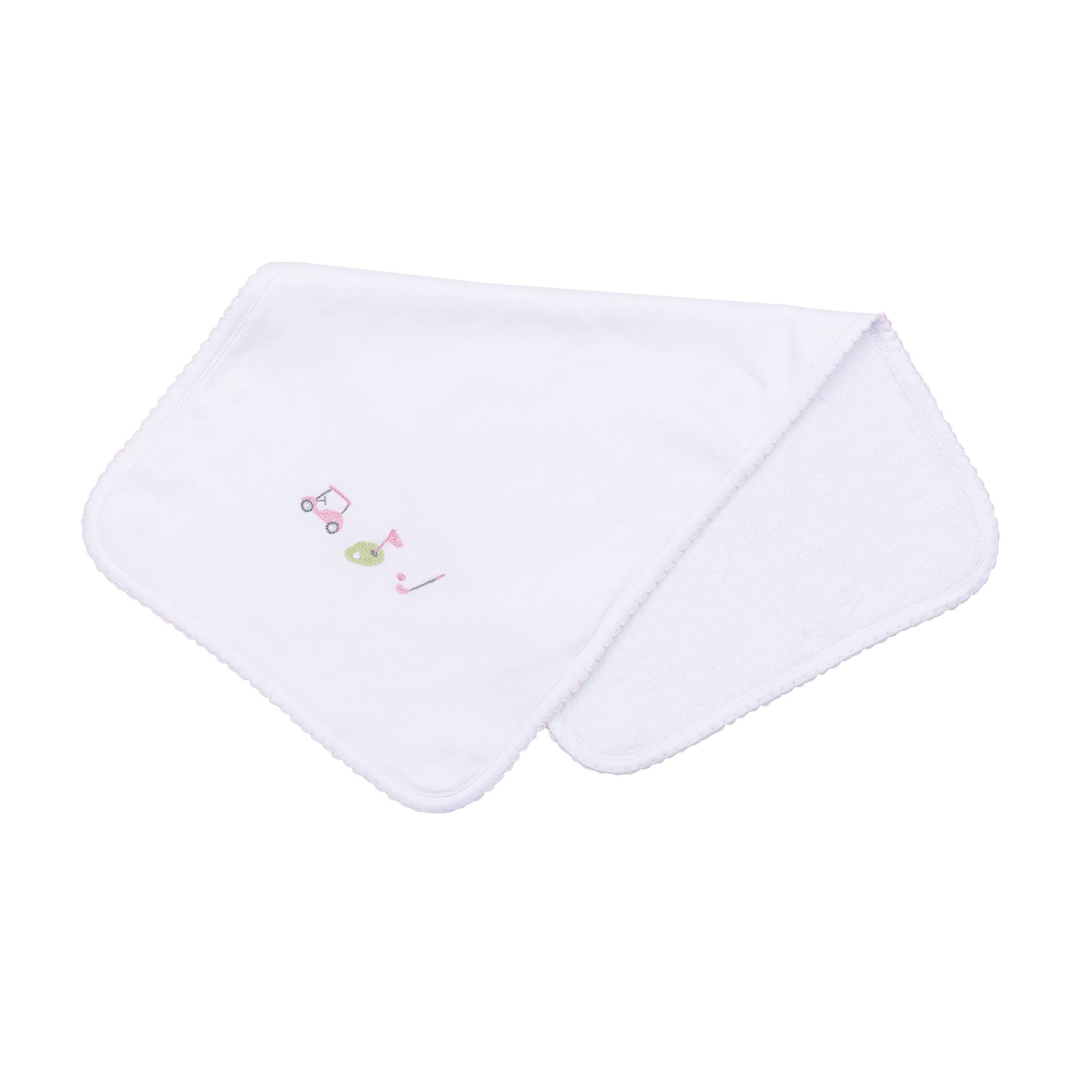 Tiny Tee Time Embroidered Burp Cloth - Pink