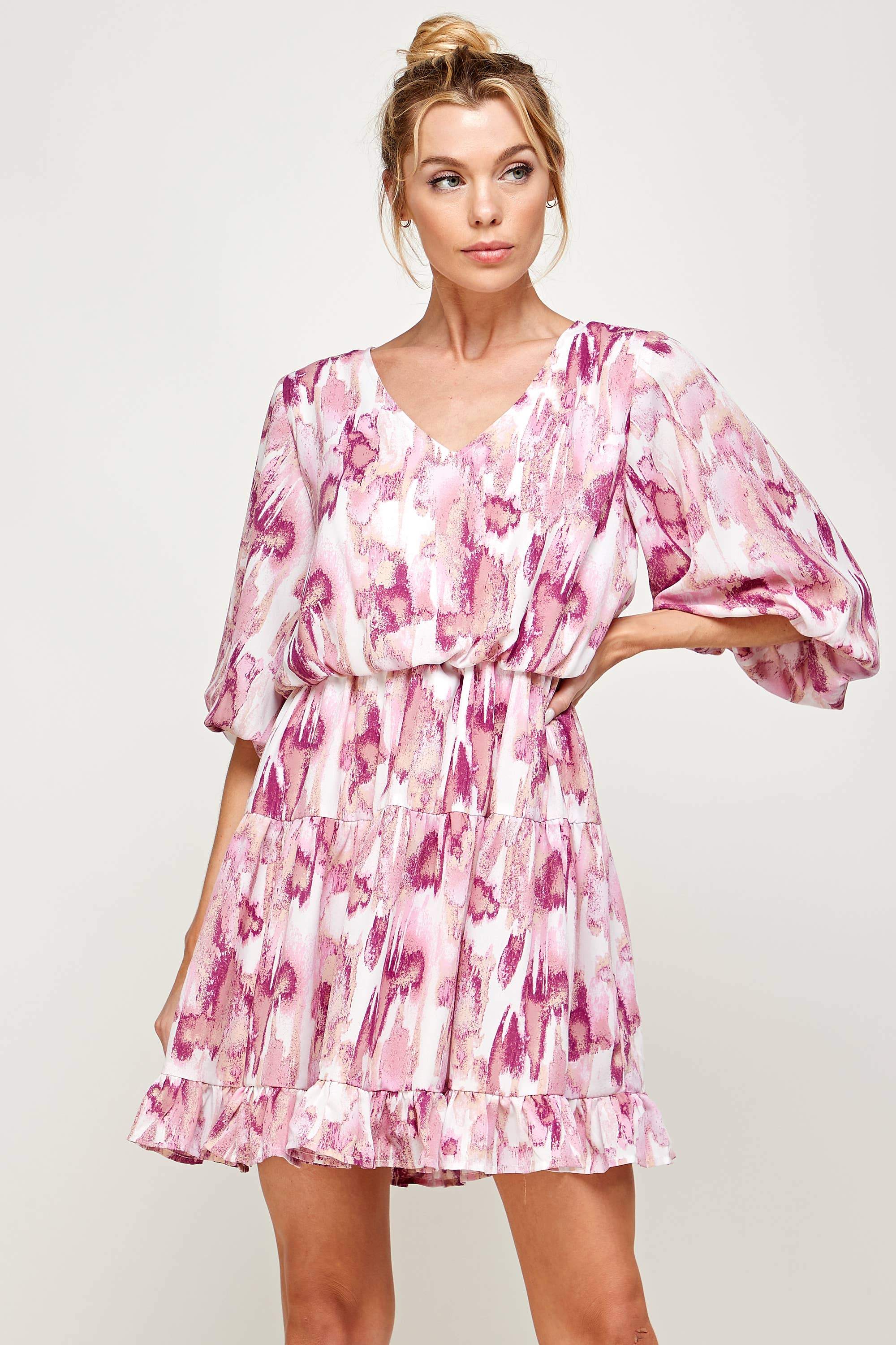 VELVET BUBBLE SLEEVE MINI DRESS
