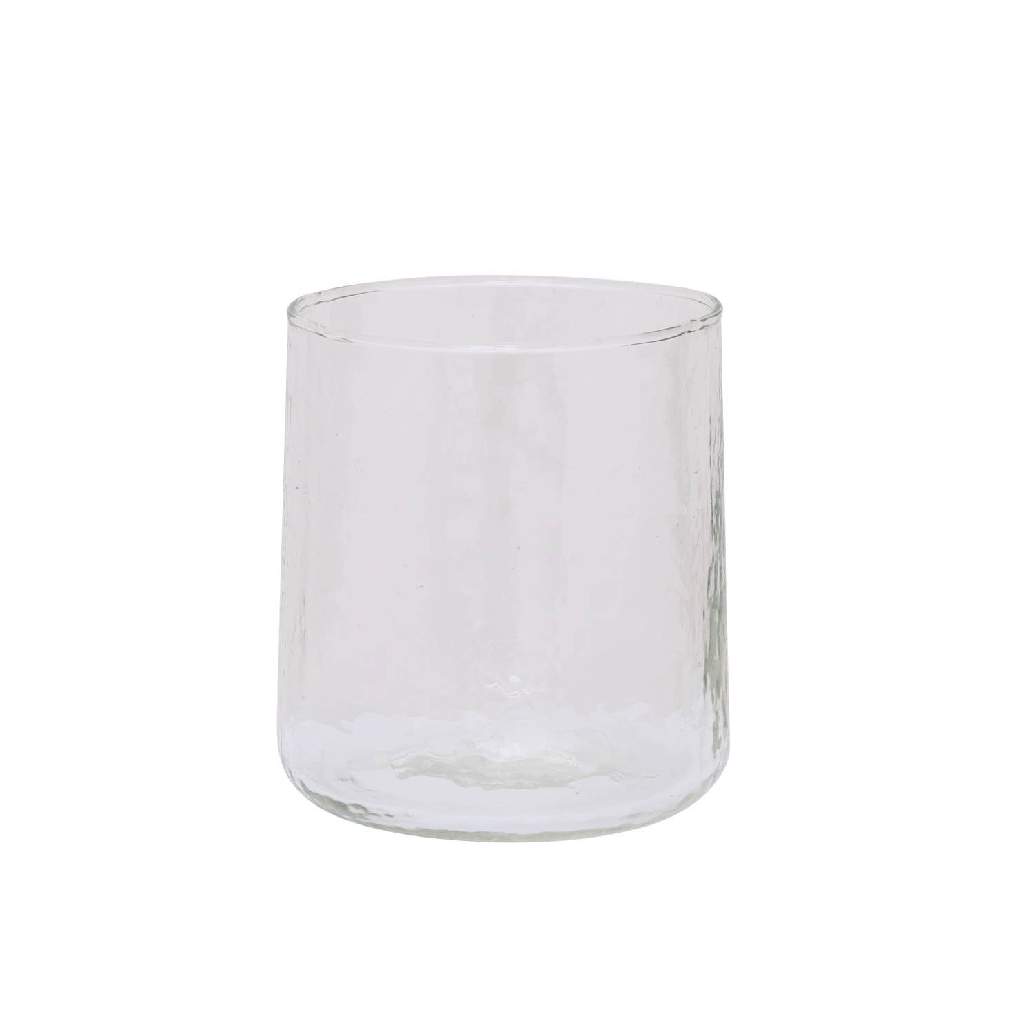 This casual glassware collection is hand made of recycled glass lending a unique characteristic to each piece. Thick glass with a subtle hammered texture, this fuss-free drinkware feels as good in the hand as it looks on a shelf. 6 oz capacity
