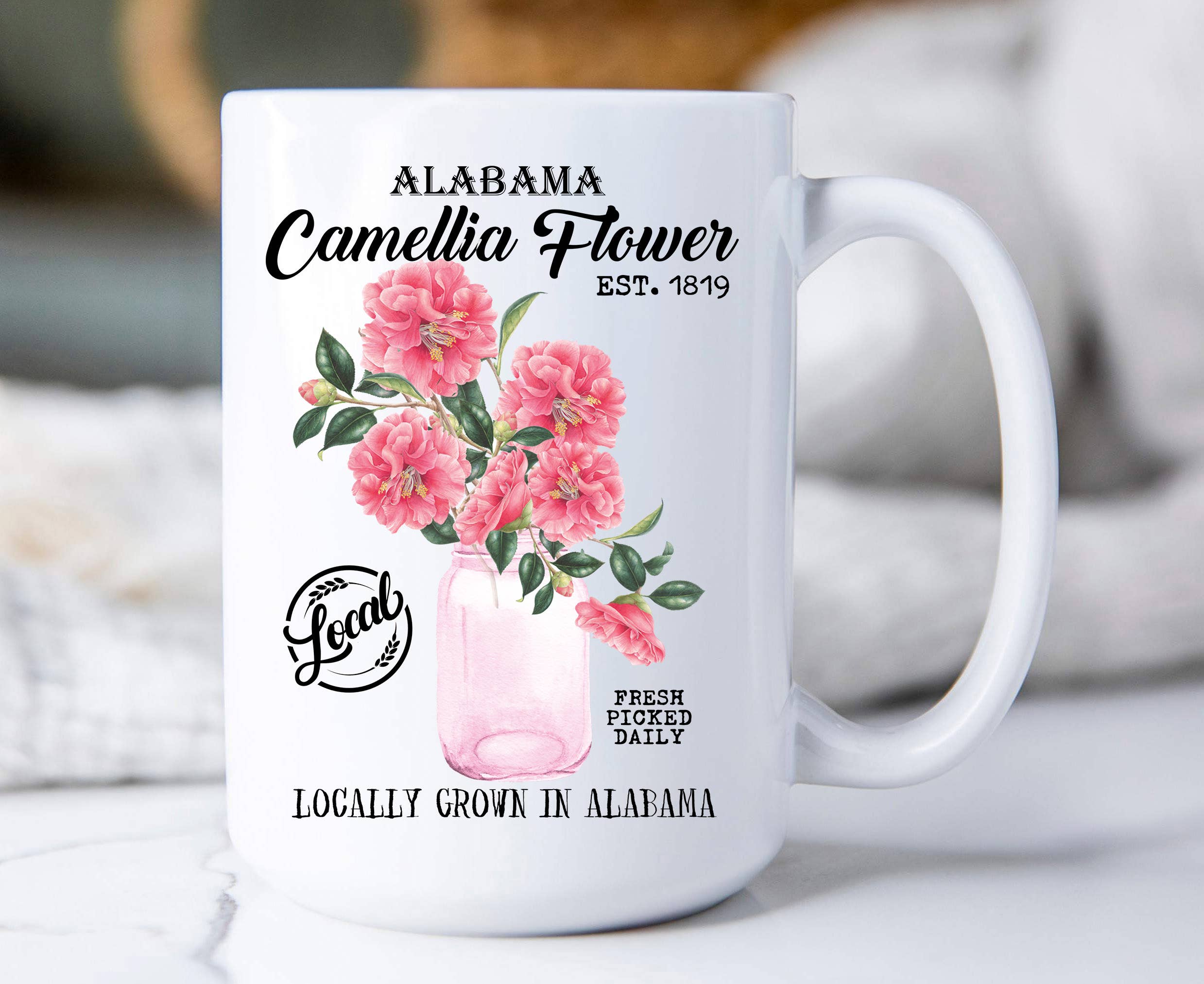 These ceramic mugs are available in 15 ounce (jumbo) size. Our mugs are made with a heat transfer process that makes the ink permanent, in fact – our mugs can be put in the dishwasher (top rack) and microwave! The art will not peel or fade so you can enjoy your mug for many years to come!