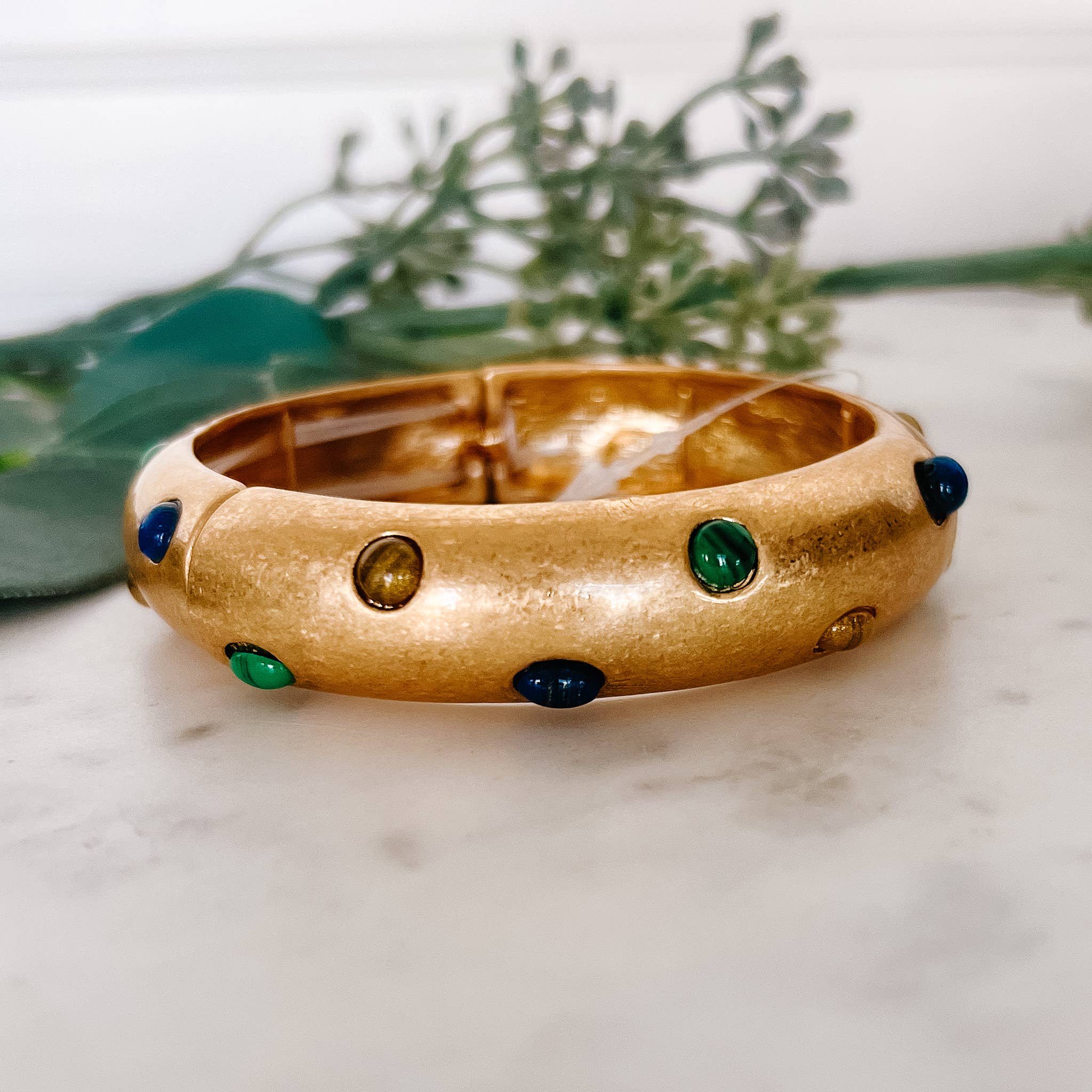 Gold & clear resin stretch bracelet Nickle and lead compliant