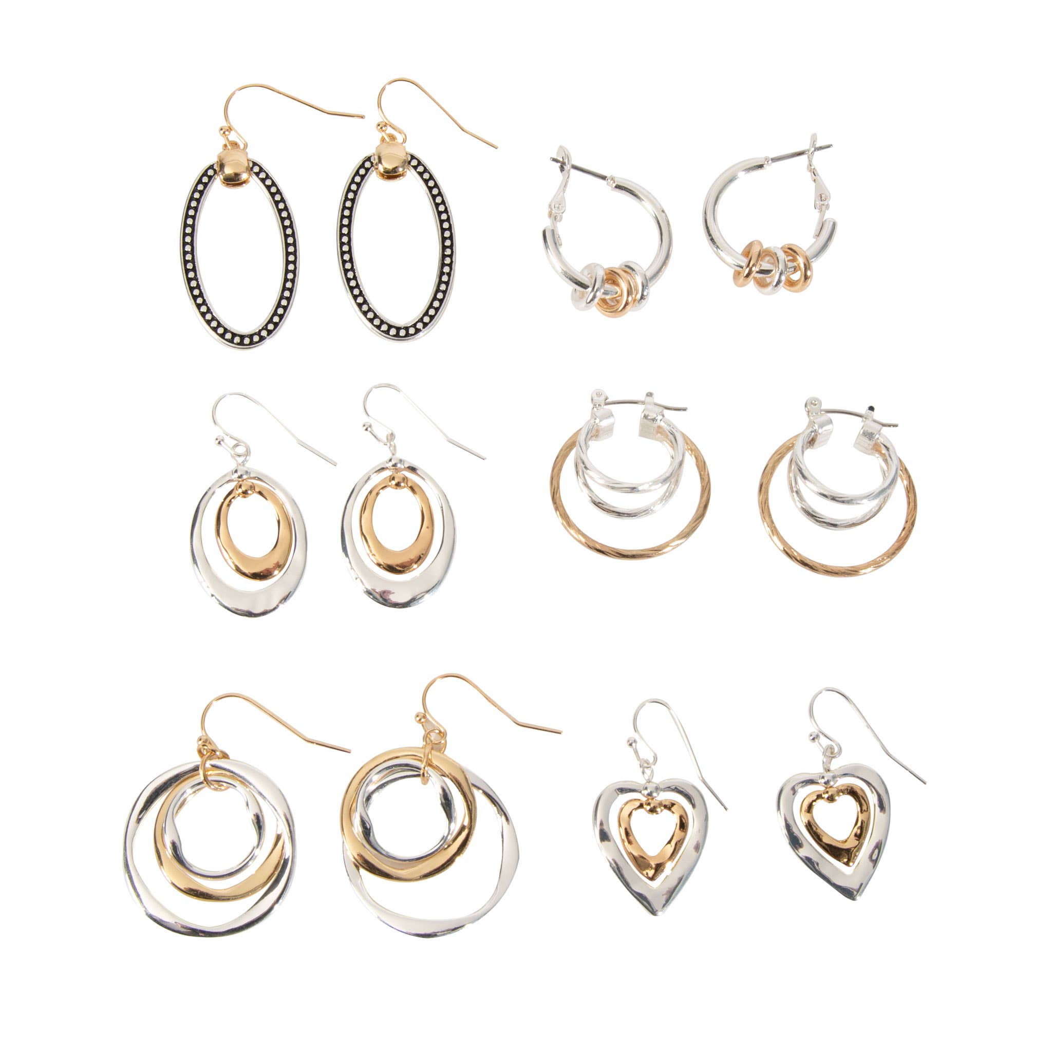 Heart Drop Pearl Studded Hoop Trio Earrings, this set includes three chic designs: elegant pearl-studded hoops, delicate heart drop accents, and versatile styles perfect for layering or standalone wear. The titanium posts ensure durability and hypoallergenic wear, making them suitable for sensitive ears. Hypoallergenic post Surgical steel post Lightweight post Durable post Product details: width: .5" - .75" length: .5" - .75" earring back: Titanium Post metal finish: gold Plating product: Lead & Nickel Compliant anti-tarnish: Double E-coating