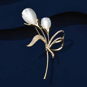 GCR Pearl Stone Double Rose Brooch for wholesale on Faire1