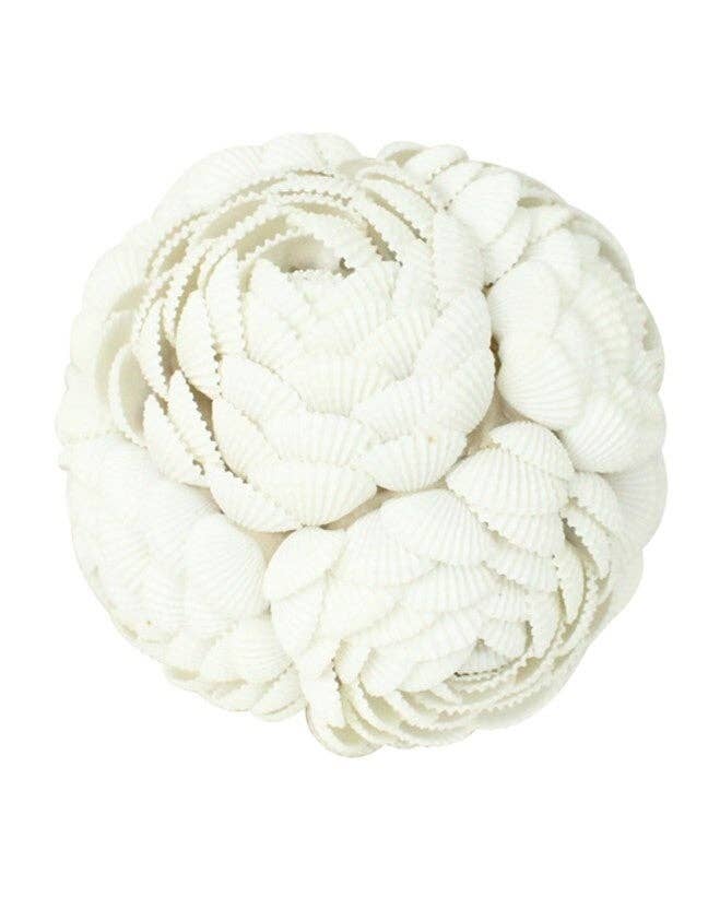The Clamrose Seashell Ball is an exquisite decorative piece that combines natural elegance with meticulous craftsmanship. This ornament is crafted using rows of small, delicate clamrose shells, arranged in a captivating spiral pattern that radiates sophistication. Each shell is carefully placed to form a textured, multi-dimensional surface that creates visual interest from every angle, making it a perfect accent for coastal and beach-inspired decor. • Ball • 3.9"(9.9 cm) • Shell