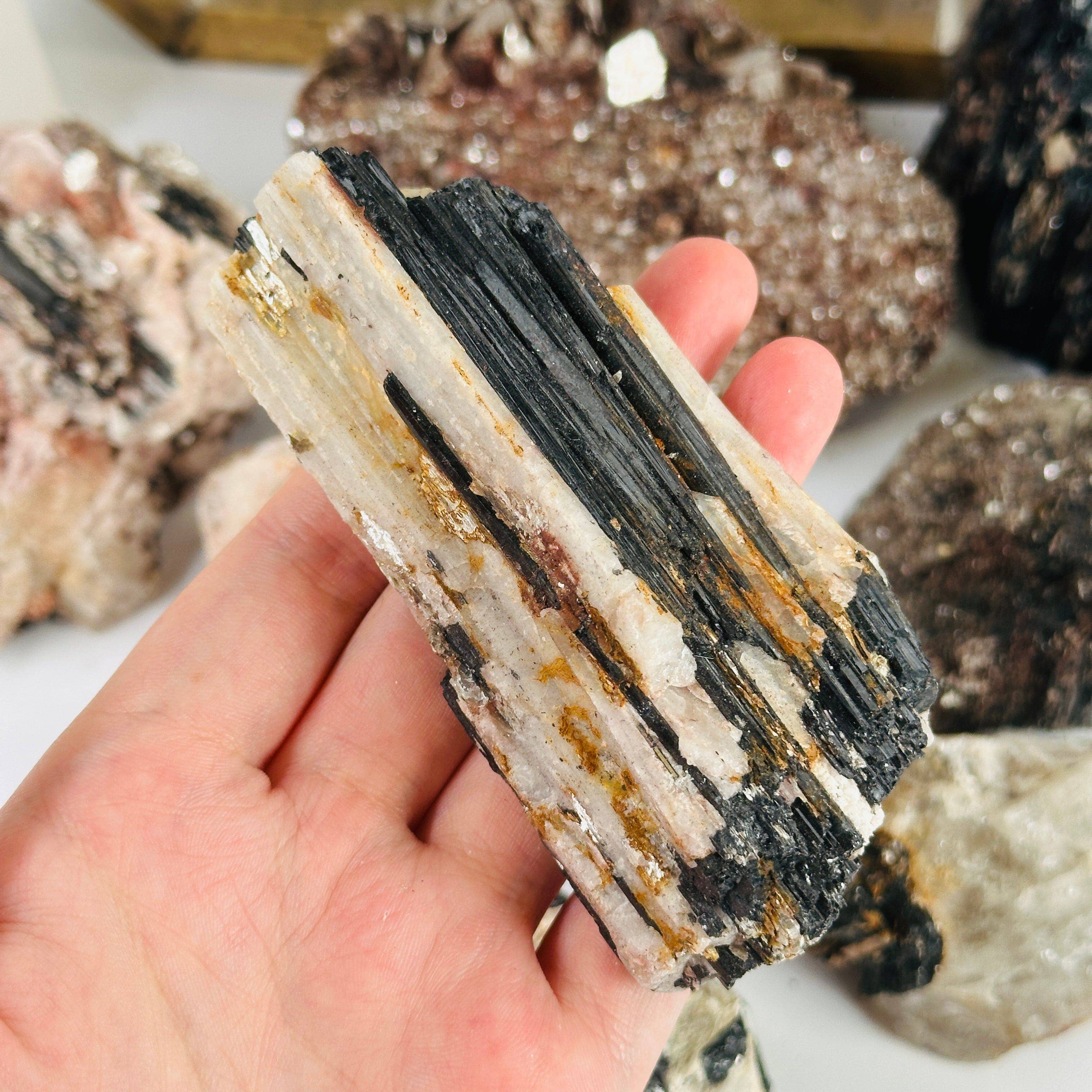 Imperial Topaz Crystal Specimens “Extra Quality” Size #2 This is an extra quality stone, the clarity on each stone is very high shining beautifully under light. While some may exhibit natural termination on the stone. Topaz rates an 8 on the hardness scale. It is a hard brilliant stone with a fine colour range. In fact, the colour of topaz is more important than the size in determining its value. This Brazilian imperial topaz can often have a bright yellow to deep golden brown hue. The term “imperial topaz” refers to the reddish-orange colour the deep golden yellow. In the past, all yellow gems were topaz, and that all topaz was yellow. We now know topaz varies in colour from pale blue and colourless, to yellow, orange, brown, and pink.