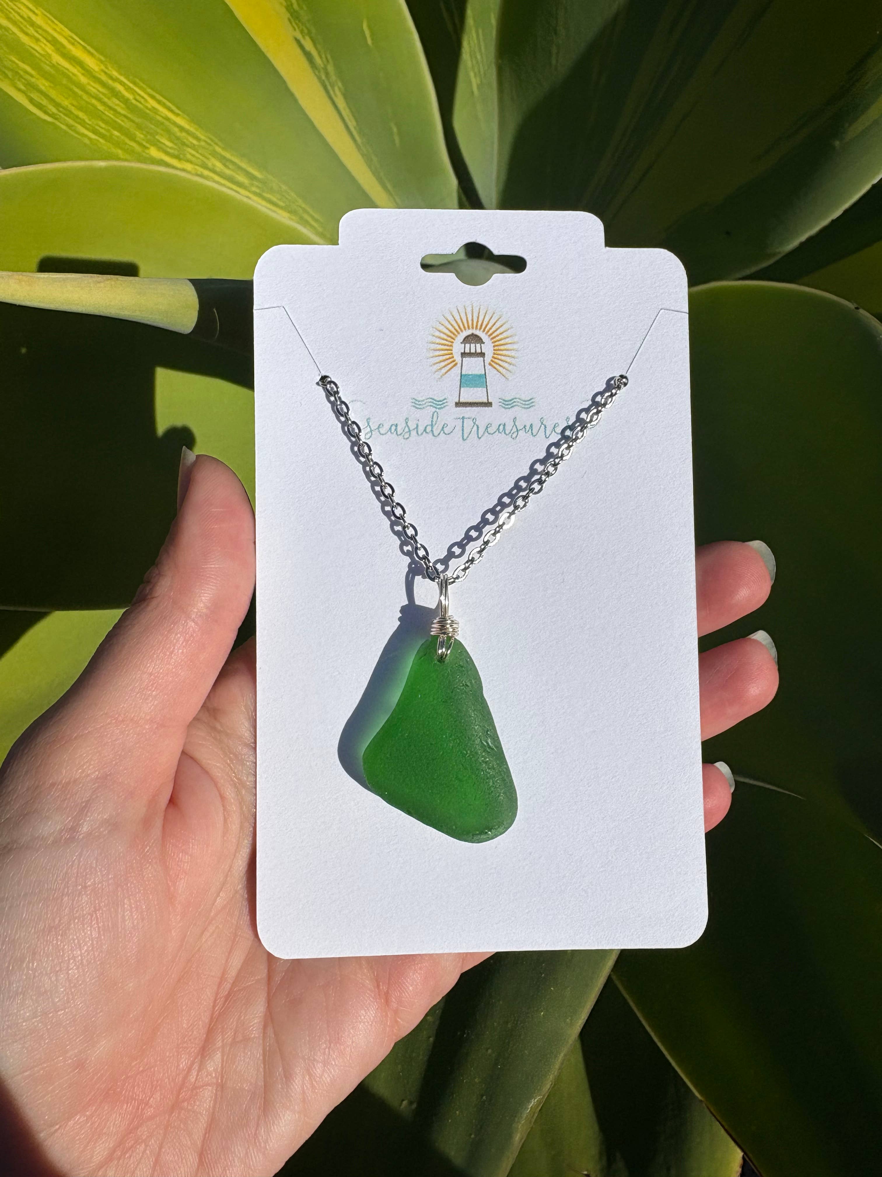 These genuine sea glass pendants come in a beautiful shade of aqua and available on a 16" or 18" sterling silver or gold filled chain. Colors range from light to semi-dark aqua. Sizes are approximately between 16-25mm (may be slightly larger or smaller). This is authentic sea glass so each piece is unique and one of a kind.