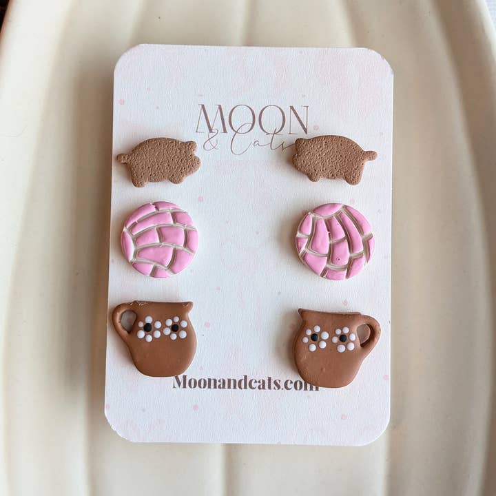Gold heart studs: Stainless steel/Alloy (Due to the handmade nature, pieces may have small variations and slight imperfections.) Earring care suggestions: • Please treat and store earrings with care in a cool/dry place. • Do not bend as they may break. • If you wish to clean your earrings, just wipe the clay parts gently with a damp cloth. • Avoid wearing the earrings when applying perfume, deodorant and hairspray. • Remove your earrings when showering or going into the pool/water.