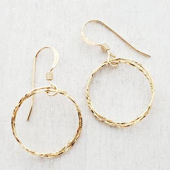 Minimal large circle shape pounded by hand with a cluster of semi-precious stones wrapped off-set to one side of each earring; a unique & yet beautifully timeless piece that is stunning for special occasions. Size — 1.75" L, 1.5" W Color — See color options in product images Material — 14k gold fill + a cluster of semi-precious stones (3-4mm) Please note that due to the handmade nature of our jewelry, variations in size, hammered texture, bead color, and other details may occur. Each piece is uniquely crafted with care, making every item truly one-of-a-kind.