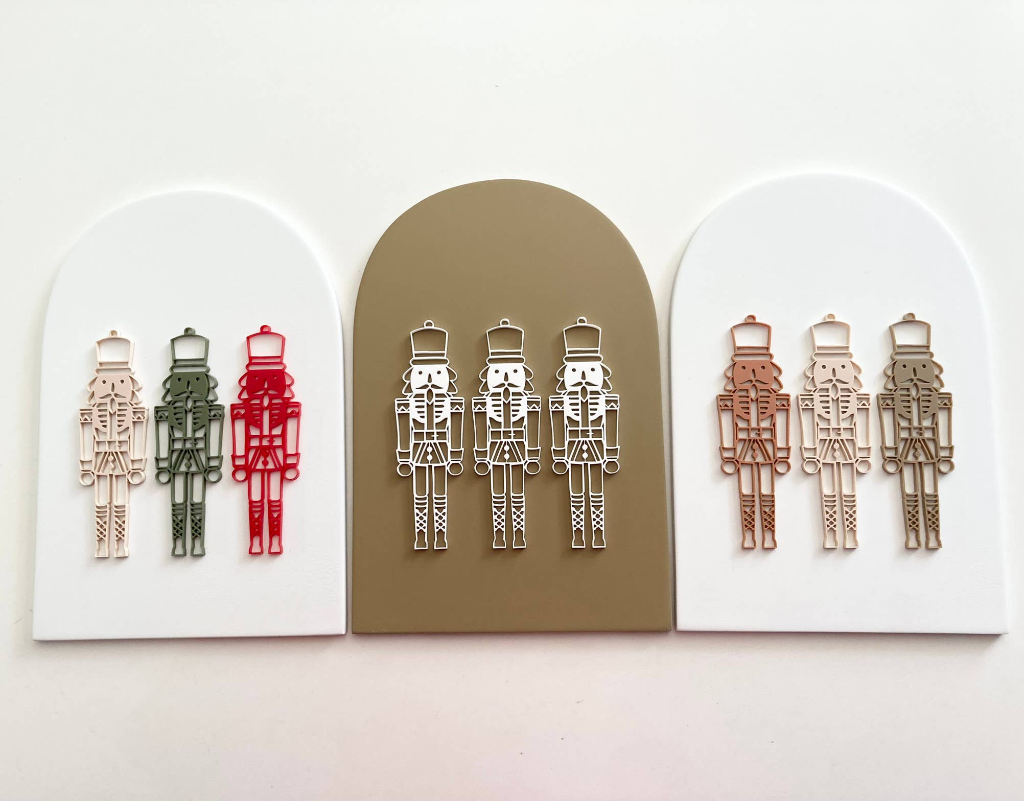 All of the arched signs had spray paint and burn marks on the back. The olive green “oh holy night” signs, looks as if it dried with plastic on it, leaving the pattern throughout. Very cute designs! And the colors are gorgeous. Love the framed pieces we received, even if there was paint on the back of half of them. If the quality was better, these would be perfect.