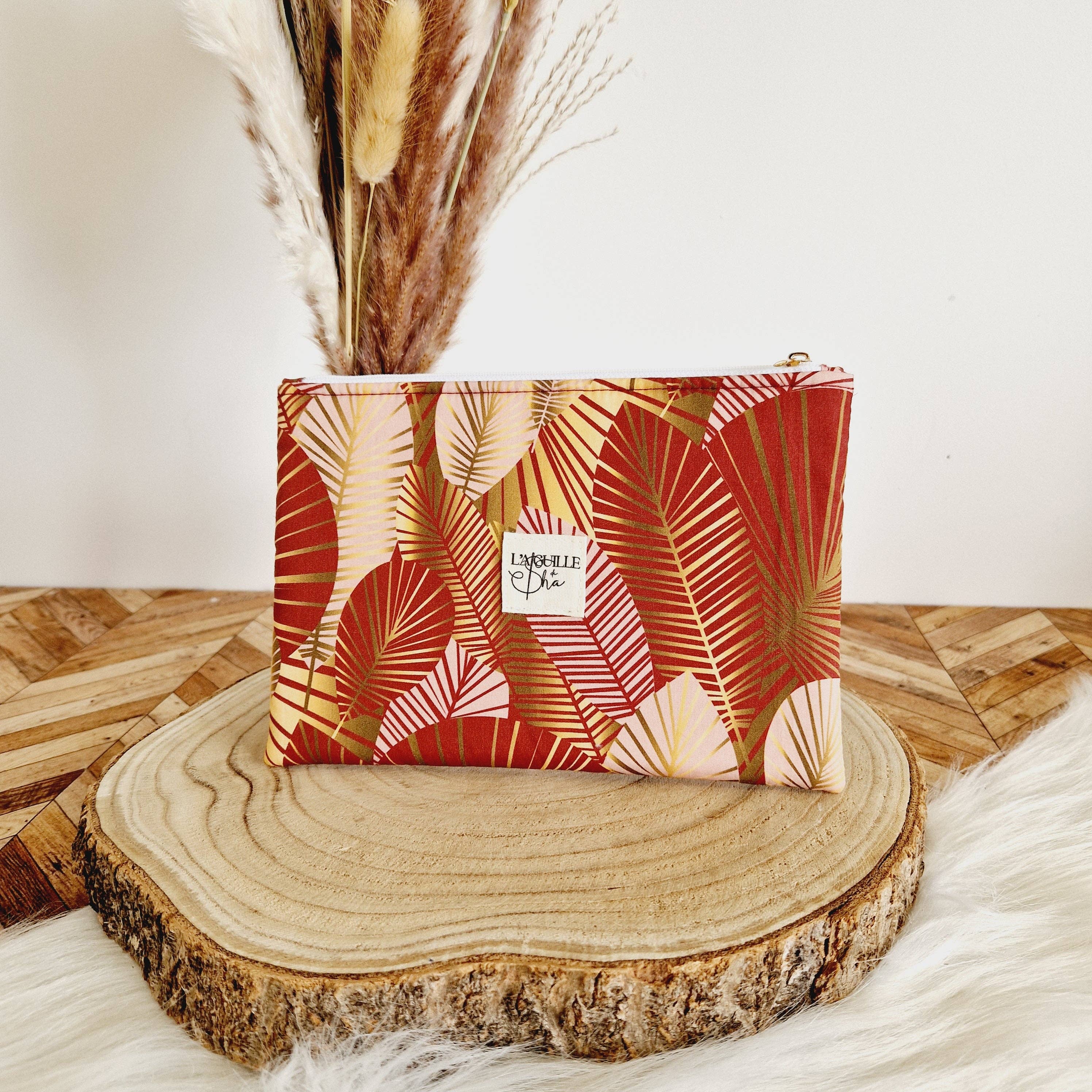 Cotton gauze pouches, available in two sizes to suit all your needs: * Small size (14 x 20 cm): Perfect for slipping into a handbag, ideal for storing makeup, papers, or small everyday items. * Large size (19 x 27.5 cm): Ideal as an organizer for the diaper bag (diapers, wipes), toiletry bag, suitcase, or home storage. Main features: * Material: Soft and lightweight cotton gauze, pleasant to the touch. * Design: Various trendy colors and patterns, such as red hearts or golden leopard, to combine style and practicality. * Handmade: Each pouch is carefully crafted in my workshop in Oise.