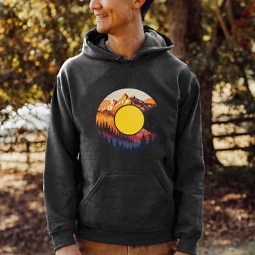 Here's another awesome mountain hoodie for anyone who enjoys the great outdoors! This mountain graphic tee has a simple and elegant mountain design that fades from warm reds to steely blues with a mountain range crop knocking out of the colorful retro layout. 2 Color Screen Print on Men's/Unisex Blended Fabric Pullover Hoodie | Heather Charcoal | All our inks contain no metals, or harsh chemicals. • 8.5 oz (280 gm) cotton/polyester blend fleece • 55% Cotton/45% Polyester • jersey lined hood • split stitch double needle sewing on all seams • twill neck tape • tear away neck label • 1x1 ribbing at cuffs & waistband • metal eyelets • standard fit Available in S, M, L, XL and 2XL _________________________ SIZE:::::::S::::::::::M:::::::::::::L:::::::::XL:::::::2XL (INCHES) Chest:: :34-37:::::38-41:::::42-45:::::46-49::::50-53 Waist:: 30-32:::::32-33::::::33-34:::::36-38:::::40-42