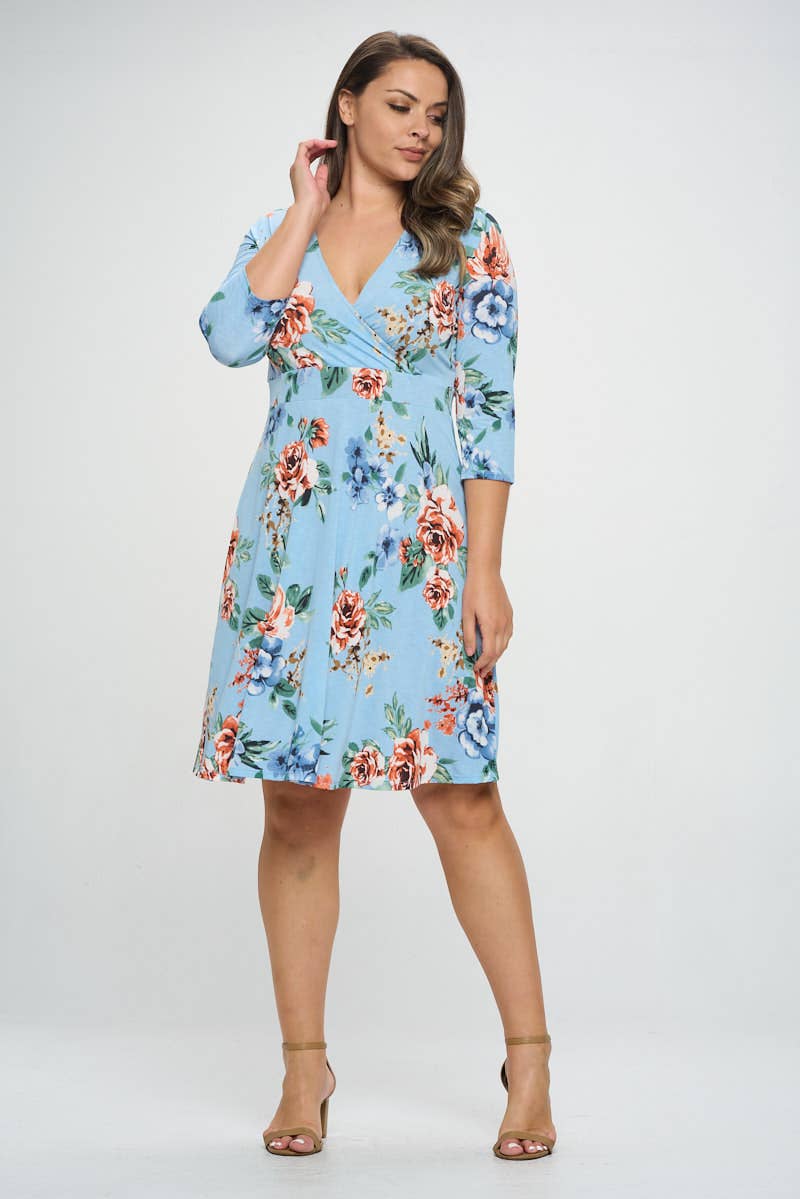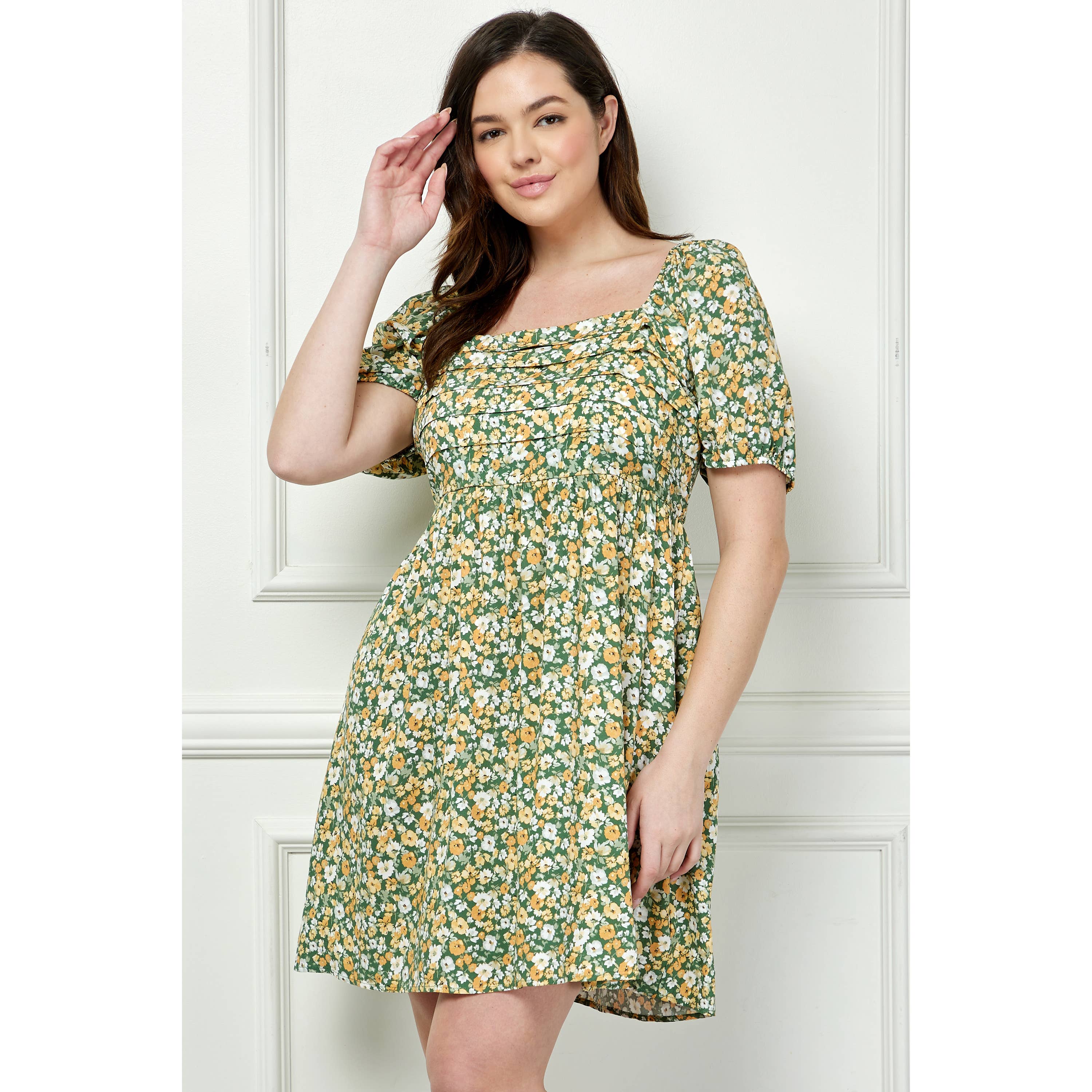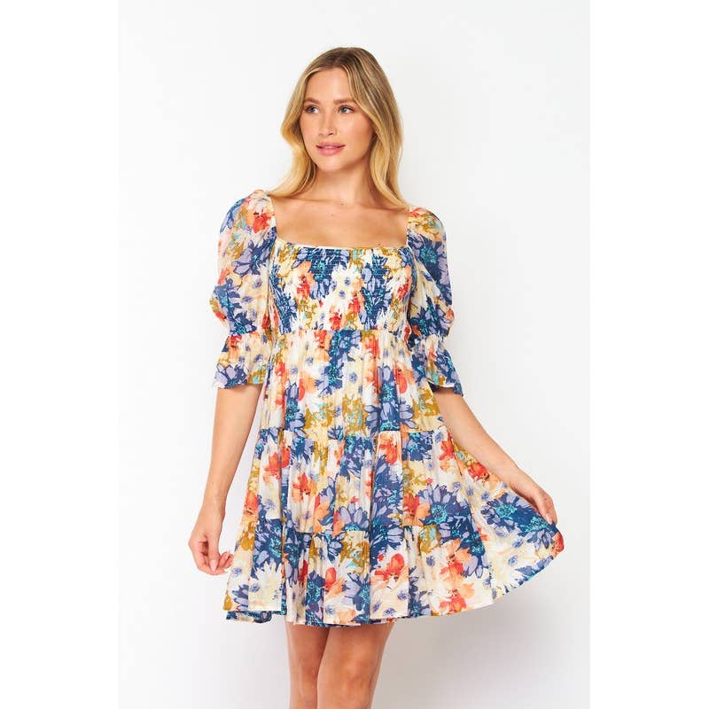 PLUS SIZE FLORAL PRINT SMOCKED FLARE DRESS