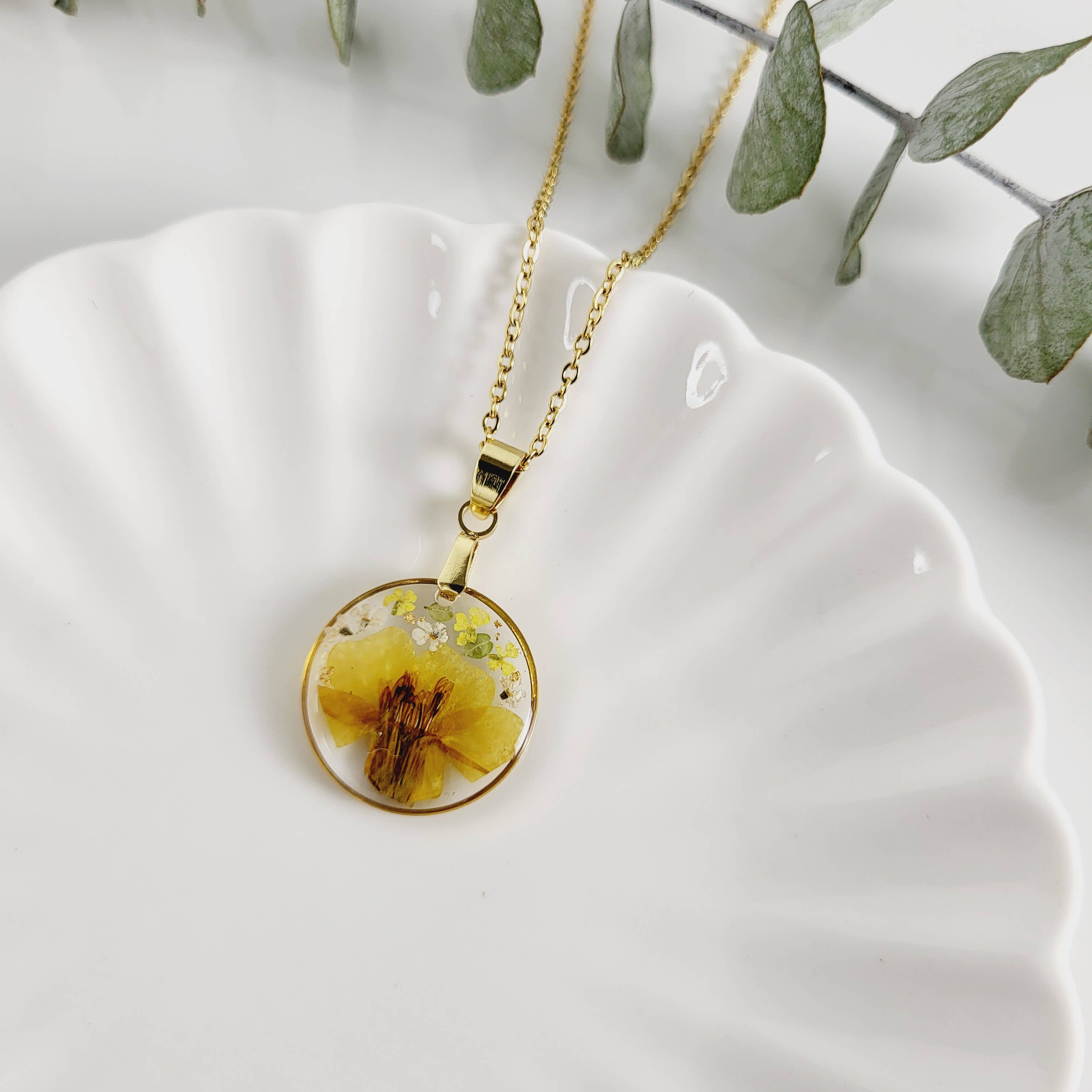 Material: jewelry grade UV resin, pressed/dried flower, 18k gold plated over stainless steel chain Chain length: 16in+2in extension Size: 0.79in x 0.79in Birth flower checklist: January: Snowdrop or Carnation February: Iris or Violet March: Daffodil or Cherry blossom April: Daisy or Sweet Pea May: Lilly of the Valley or Hawthorn June: Rose or Honeysuckle July: Larkspur or Water Lilly August: Gladiolus or Poppy September: Morning Glory or Aster October: Marigold or Cosmo November: Chrysanthemum or Peony December: Holly or Narcissus Birth flower necklaces are not only a wonderful way for individuals to express their identity, but they also hold sentimental value, making them perfect for special occasions such as birthdays, weddings, anniversaries, and holidays. By incorporating these necklaces into your retail offerings, your store will become a go-to destination for thoughtful and unique gifts.