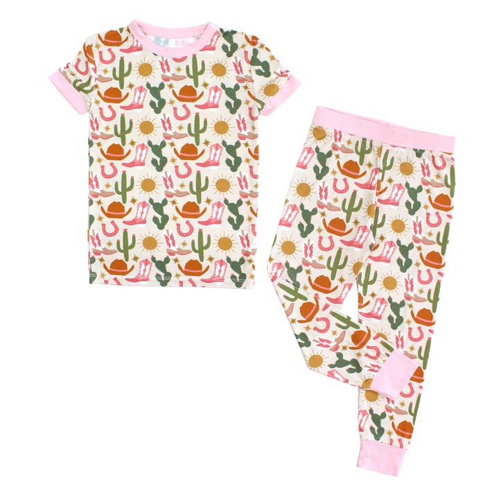 Wholesale Howdy Western Bamboo Short Sleeve Kids Pajama Pants Set