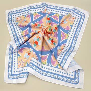 Crafted from 100% silk twill, this neckerchief is an essential in all wardrobes. This otomi inspired artwork features the beautiful silhouettes of natural, free women. This Dora Nola original marks the beginning of an amazing journey that you can be a part of! Wear it in your hair, around your neck or as an accent on your favorite bag or purse. An easy, everyday accessory. * 20"W x 20"L * 100% silk twill * Nude Pink * Packaged in a Dora Nola Signature gift box Dry clean only.