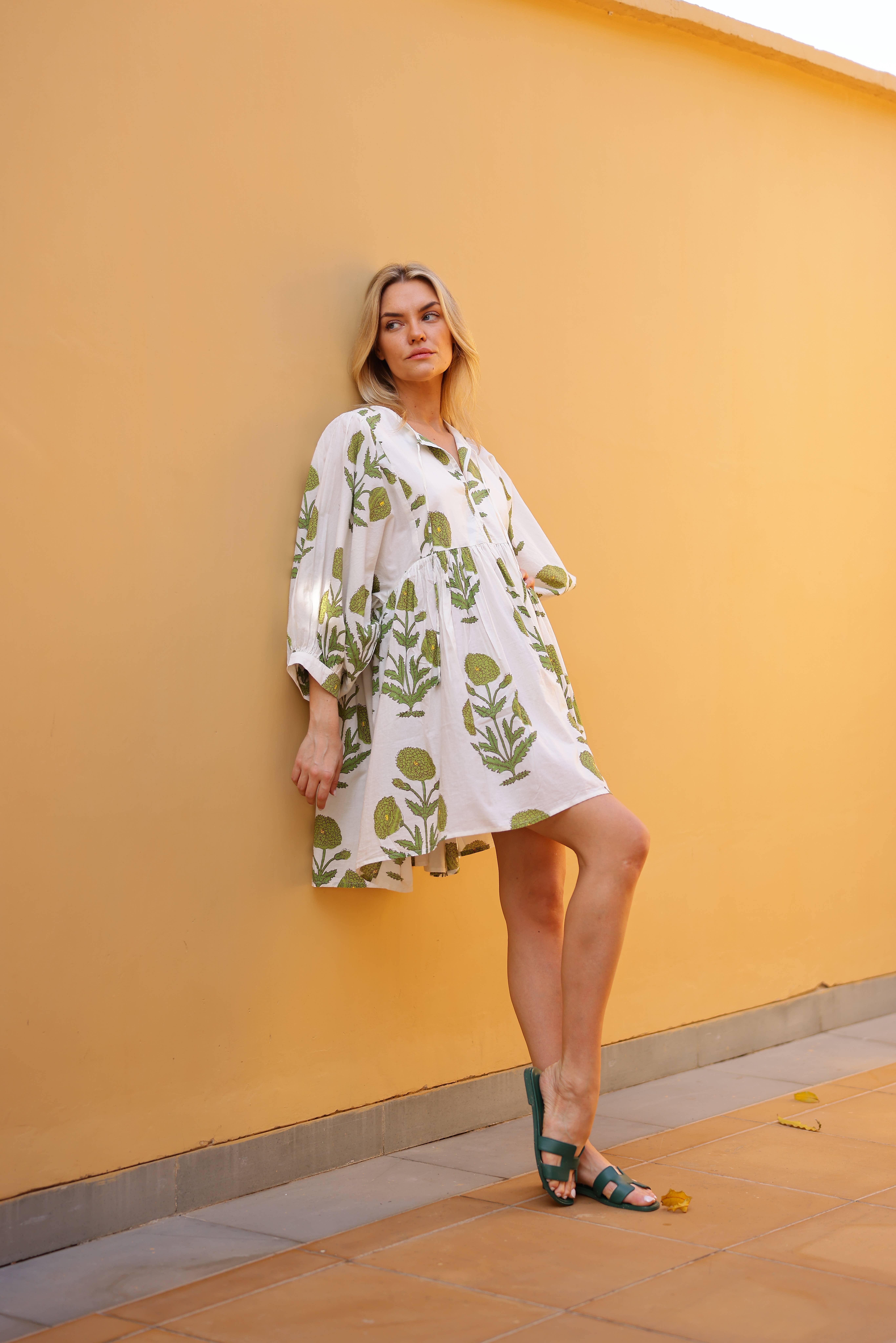 A mini version of our Taj Maxi, the Taj Mini is crafted from feather-light cotton voile and has a loose flowing fit. This easy-breezy dress features feminine 3⁄4 length balloon sleeves and a tie at the neckline. 100% Cotton Voile Feather light feel Billowy sleeves