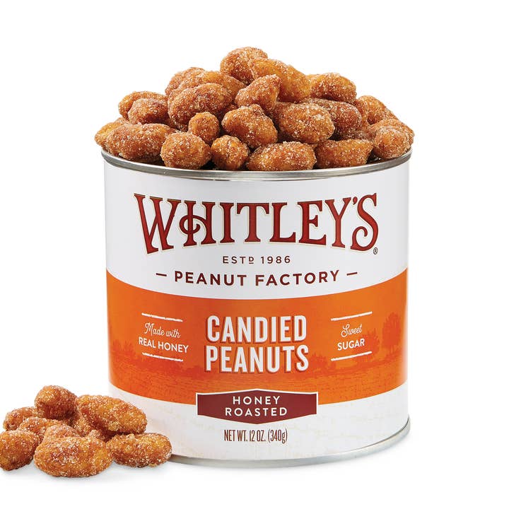 The famous "home-cooked" Virginia peanut! Crunchy, fresh and distinctive. One bite and you'll taste why these peanuts are our most popular selection. All of our nut products in vacuum sealed tins have a 10-12 month shelf life before opening. Gluten-free ingredients Serving size: 3 tbsp (30 g), Calories: 140, total fat (dv%): 10 g (13%), saturated fat (dv%): 2 g (11%), trans fat: 0g, cholesterol (dv%): 0 mg (0%), sodium (dv%): 80 mg (4%), total carbohydrate (dv%): 6 g (2%), dietary fiber (dv%): 3 g (10%), total sugars: 1 g (includes 0 g added sugars (0%)), protein: 8 g, vitamin d (dv%): 0 mcg (0%), calcium (dv%): 15 mg (2%), iron (dv%): 0.3 mg (2%), potassium (dv%): 190 mg (4%)