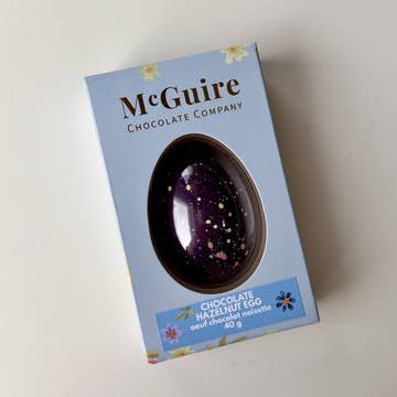 A luxuriously smooth hazelnut filling with a creamy, melt-in-your-mouth texture, encased in a rich dark chocolate shell. Incredibly smooth and absolutely delicious! Colour of egg may be different than pictured. Product is designed to ship well.