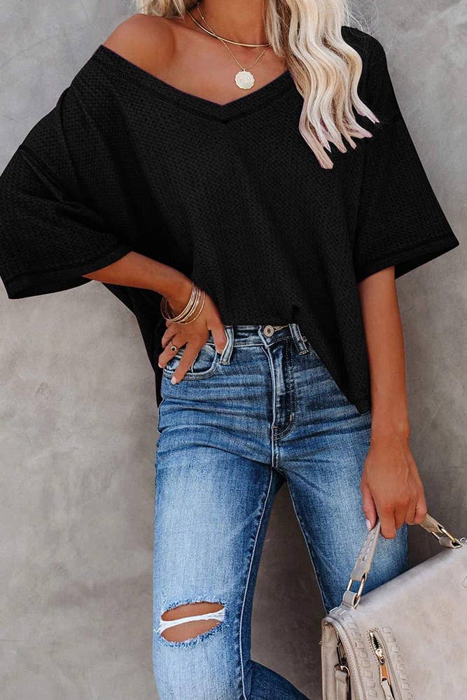 Discover the Moon Glow Texture Knit Top: Our favorite, oversized-comfy-cute-top, ever. With its great fit, you’ll quickly fall in love because it features: * So comfy, textured, stretch knit fabric * Oversized and loose silhouette for a relaxed and comfortable look * Classic crew neckline * Loose Dolman style short sleeves * Side slits for added comfort and style Model is 5'8" and wearing a size Small. Approximate measurements are as follows: * SMALL: Bust: 66", Waist: 66", Hip: 66", Length: 26", Back Length: 28", Sleeve length: 11 1/2" * MEDIUM: Bust: 68", Waist: 68", Hip: 68", Length: 27", Back Length: 29", Sleeve length: 12" * LARGE: Bust: 70", Waist: 70", Hip: 70", Length: 28", Back Length: 30", Sleeve length: 12 1/2" * X-LARGE: Bust: 72", Waist: 72", Hip: 72", Length: 29", Back Length: 31", Sleeve length: 13" * 96% Polyester, 4% Spandex * Hand wash cold, Lay flat to dry * Made in Mexico