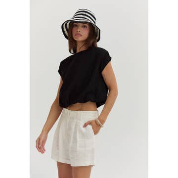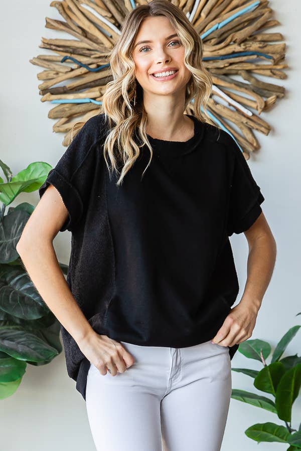 Moon Glow Texture Knit Top - Black