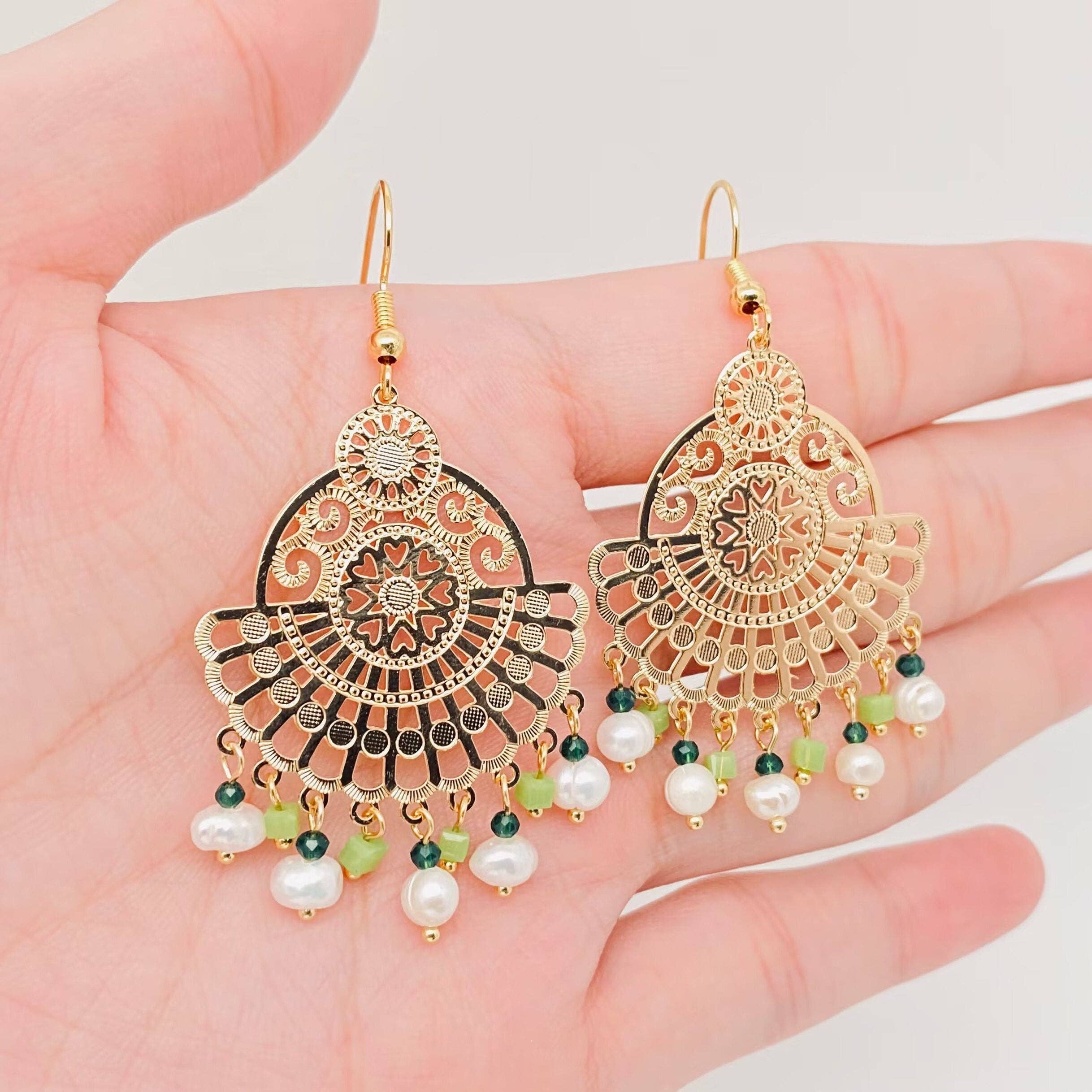 Oxidized Silver Jhumka Earrings by Quirky Fashions These exquisite Oxidized Silver Jhumka Earrings feature a traditional yet elegant design that embodies timeless charm. The intricate craftsmanship includes floral and geometric patterns on the stud and the upper segment, leading to a dome-shaped jhumka adorned with delicate detailing. Surrounding the jhumka is a ring of dangling white pearls, adding a touch of sophistication and grace. The earrings are lightweight, making them comfortable to wear, and are perfect for weddings, festive celebrations, or ethnic occasions. The antique silver finish enhances their vintage appeal, while the pearl embellishments offer a contemporary twist. These earrings are versatile and pair beautifully with sarees, lehengas, or even Indo-western outfits, making them a must-have accessory for your jewelry collection. Material: Oxidized silver, faux pearls Closure Type: Push back
