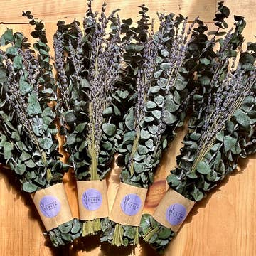 These beautiful purple lavender bouquets of Folgate, an English lavender variety, are fragrant in aroma and vibrant in colour. Perfect for your one-of-a-kind gift, to brighten up your living space or just to have to smell and admire. Bouquets are between 10 and 13" long. Please note that our dried lavender is not for culinary use.