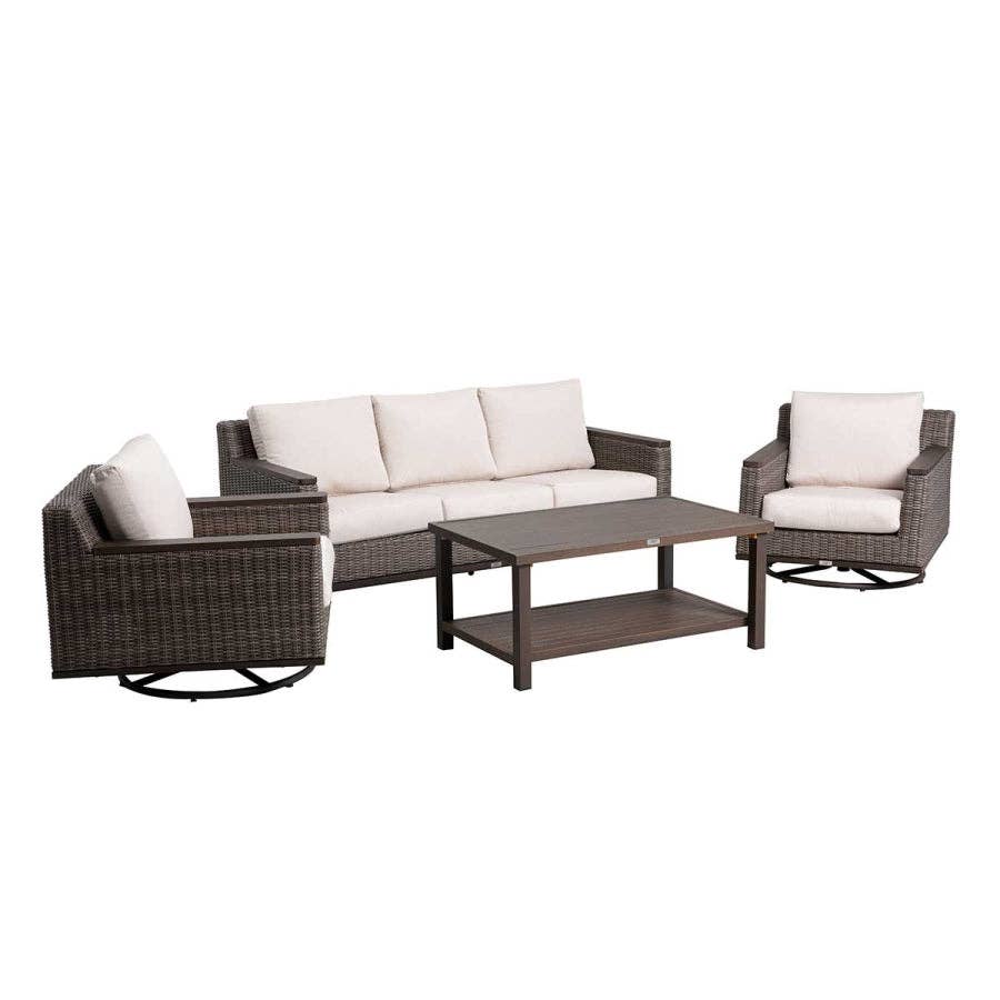 Elevate your outdoor living with this sophisticated pair of Lassen Wicker Swivel Rocking Chairs. Crafted from durable aluminum and premium rattan, each chair features a sturdy aluminum frame paired with a nylon foot base for stability. The generously padded 6-inch gray polyester cushions—filled with sponge and cotton—provide exceptional comfort for extended relaxation. The swivel rocking mechanism allows effortless movement, while the thoughtfully designed dimensions (35"D x 34.25"W x 35"H per chair) ensure optimal proportions for any patio or deck. Assembly required. Transform your outdoor space into a refined retreat. SPECIFICATIONS Outdoor Furniture * Furniture Type: Wicker Swivel Rocking Chair * Color: Gray * Number of Seaters: 2 Material * Sofa Seat Material: Aluminum+Rattan * Sofa Frame Material: Aluminum+Rattan Frame * Body Frame: Aluminum+Rattan * Seating Frame: Aluminum+Rattan * Foot Stool: Aluminum * Foot Base: Nylon Cushion * Cushion included: Yes * Cushion Fabric Type: Polyester * Cushion Color: Gray * Cushion Thickness: 6 inches * Base Cushion Filling: Sponge * Back Cushion Filling: Cotton Others * Furniture Assembly: Yes DIMENSIONS Lassen Wicker Swivel Rocking Chair SAW500SC45 D35"*W34.25"*H35" x 2