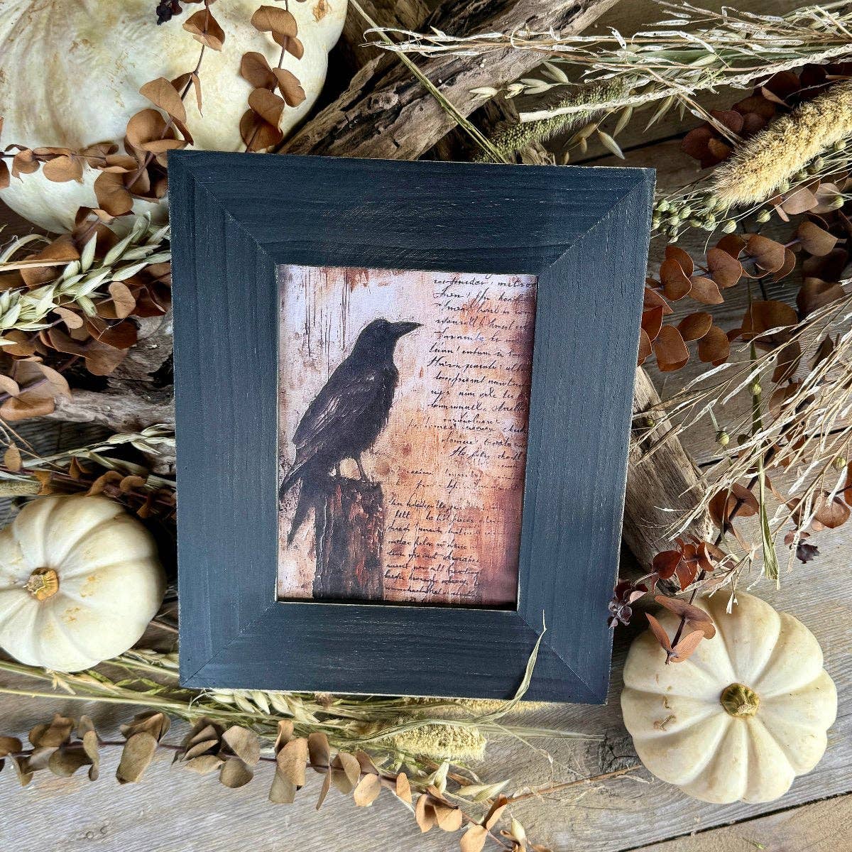 Autumnal Offering – Raven & Harvest Still Life Print Hand-illustrated by me and printed in my home studio, "Autumnal Offering" is a richly detailed seasonal still life created to honor the shifting of the seasons. Perfect for autumn décor, a harvest altar, or as a meaningful piece for Mabon or Samhain celebrations. This original illustration features: * A black raven perched on a branch of blackthorn * A raven skull and scattered autumn apples * A curling gourd and ripe pumpkin * A Rowan branch with red berries * A smoky quartz point with a glowing candle * A delicate cobweb with a dangling spider * A luminous full harvest moon Every element was dreamed up and hand-drawn by me, blending the symbolism of the harvest season with a moody, naturalist style.