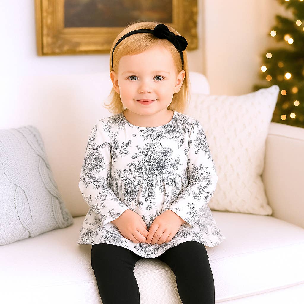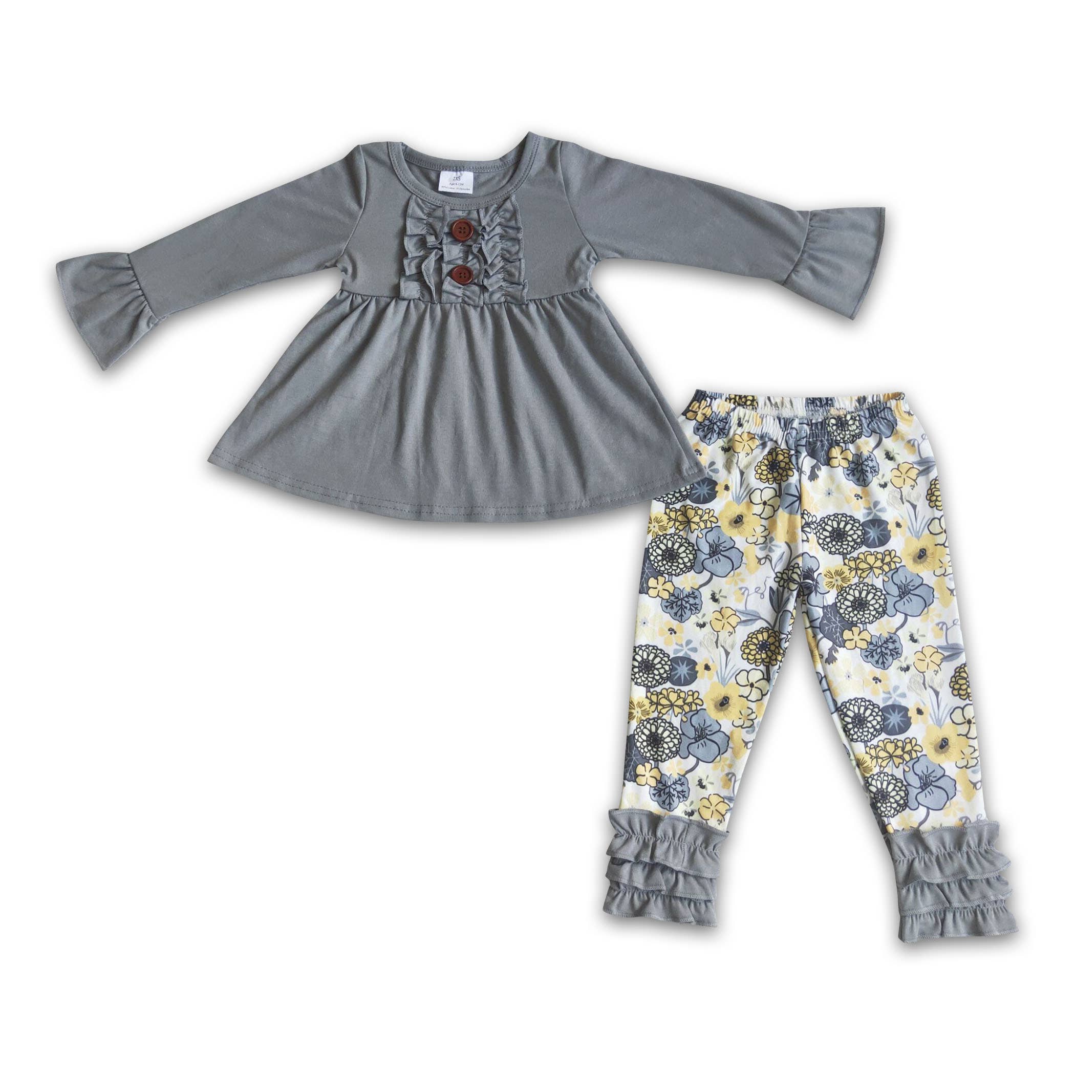 Wholesale Kids Black & White Check Smiley Face Ruffle Top Leggings Set