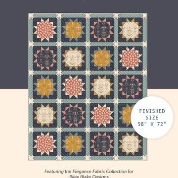 Gertrude’s Star is named after my great-grandmother, Emily Gertrude. This elegant quilt is block-based and includes options for a simple 2-Tone, a Scrappy, or an FQ Version. Be sure to share your creations on Instagram or Facebook using the hashtag #gertrudesstarquilt. All of our patterns include thorough, illustrated instructions and tested yardage. Format: Paper. This pattern is a printed paper pattern and will require a physical shipping address. Cover Quilt: Accent fabric uses the scrappy fabric requirements, and the background uses the 2-tone fabric requirements. Quilting by Laurie Moynes. Pattern Specs: Recommended Skill Level: Intermediate Approximate Finished Size: 1 Block: 30in. x 30in. Lap: 55in. x 55in. Large Throw: 80in. x 80in. Twin: 80in. x 105in. See images for fabric requirements. Designed by Meg Kelly.