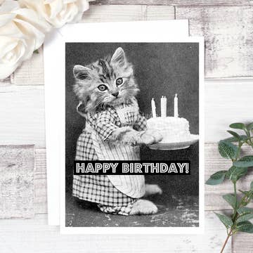 Cheerful Whimsies - Wholesale Birthday Card - Greeting Card. Have A Purrr-fect Birthday! Vintage Cat