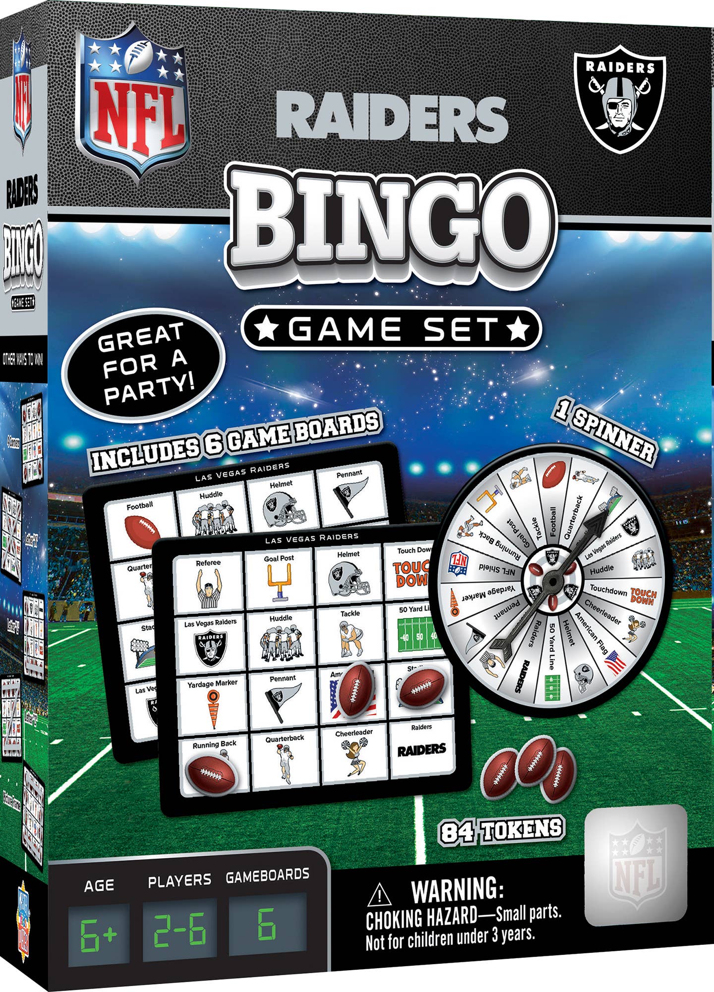 This MasterPieces NFL 1000pc 19.25" x 26.75" Las Vegas Raiders Puzzle is perfect for any Raiders fanatic.  Now fans can play all year long! To reduce its impact on our environment, the chipboard used in this puzzle is made of 100% recycled material.