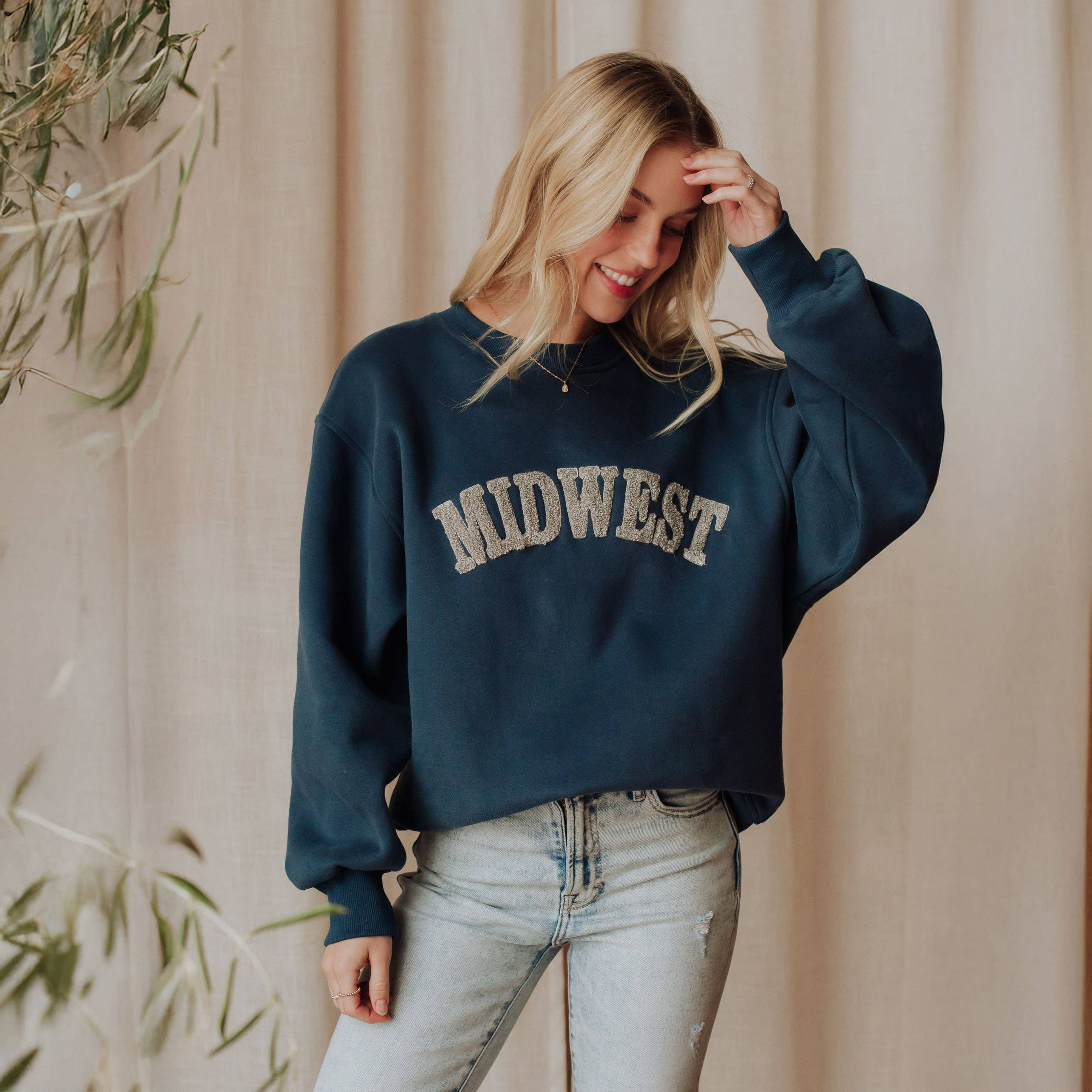 Our famous Midwesterner Embroidered Crew reimagined in clay! Sizing * Unisex relaxed fit - fits loose for a less structured, more relaxed silhouette. Details * 80% cotton/20% polyester blend * This is a pigment dyed product. Please note that the pigment-dyeing process gives each garment unique character. Please allow for slight color variation in washing. * Due to the nature of pigment dye, loose pigments may remain on the surface of the garments. We strongly recommend washing this garment with only like-colored garments as some of the pigment dyes may stain light or white colored garments in the wash cycle. * We recommend that you wash this garment in cold water.