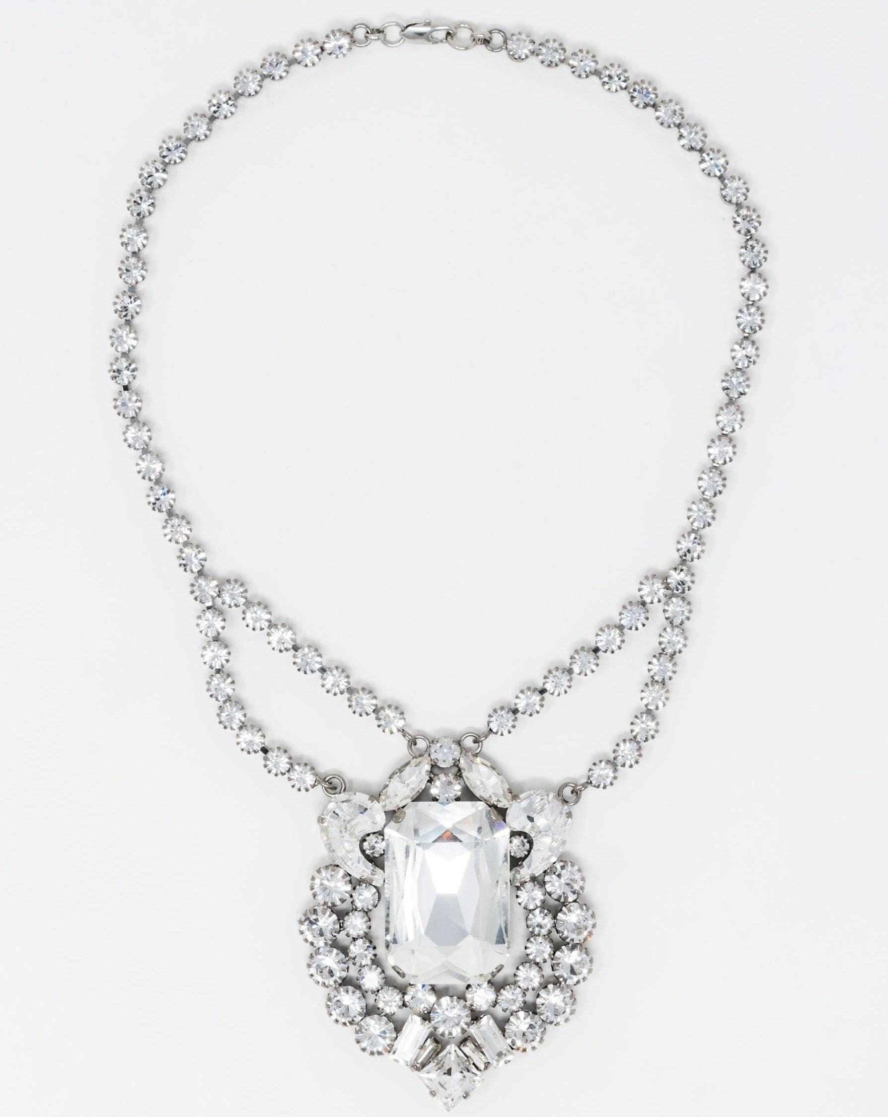 Silver-plated brass choker necklace with buckle decoration and Swarovski crystals. Adjustable closure to fit the neck size. NUBESdeMAZAPAN jewelry is made from hypoallergenic and nickel-free bronze, copper, and brass, synthetic stones, and Swarovski crystals, in compliance with current Italian and international regulations (D.Lgs 206 of 06/09/2005).