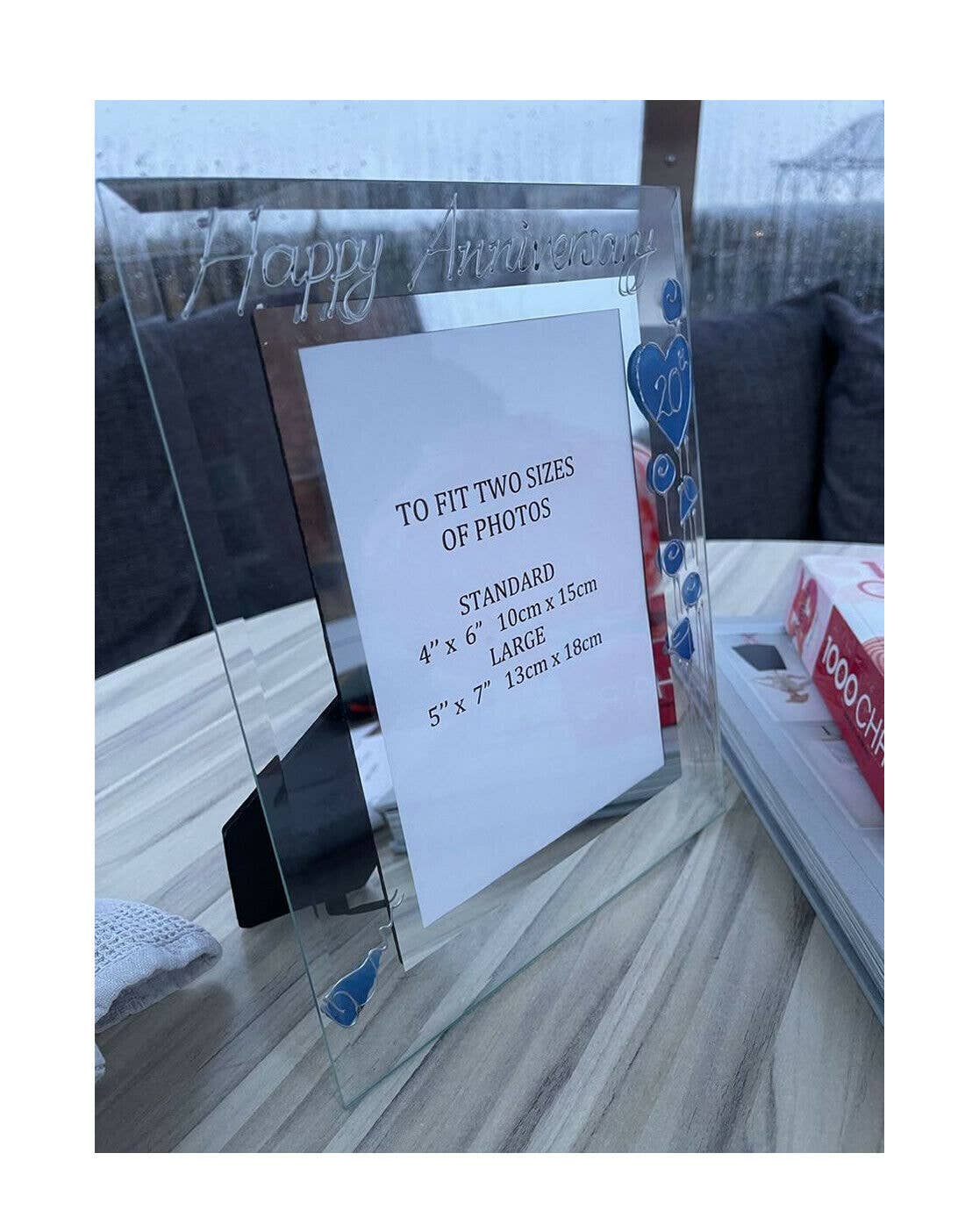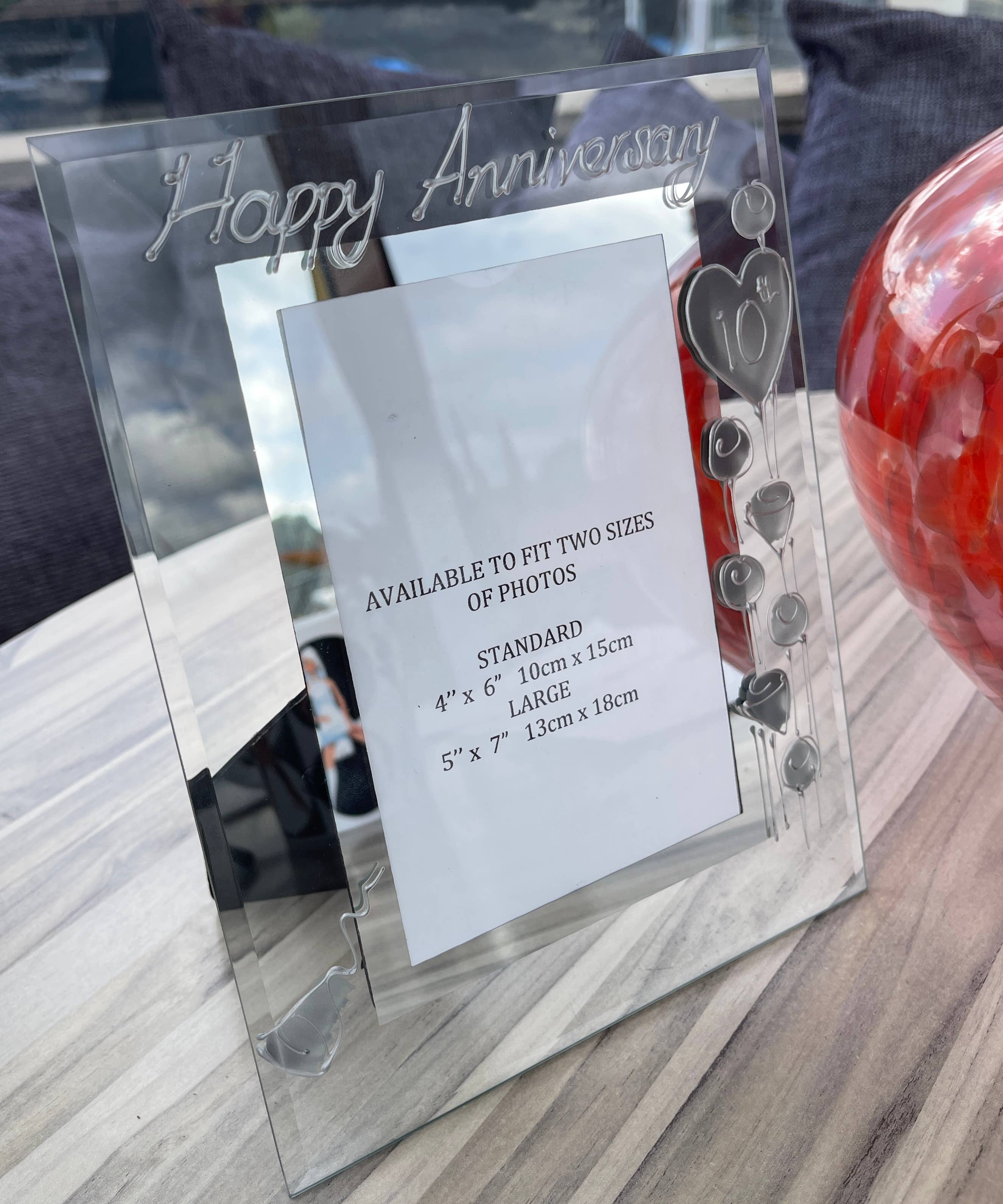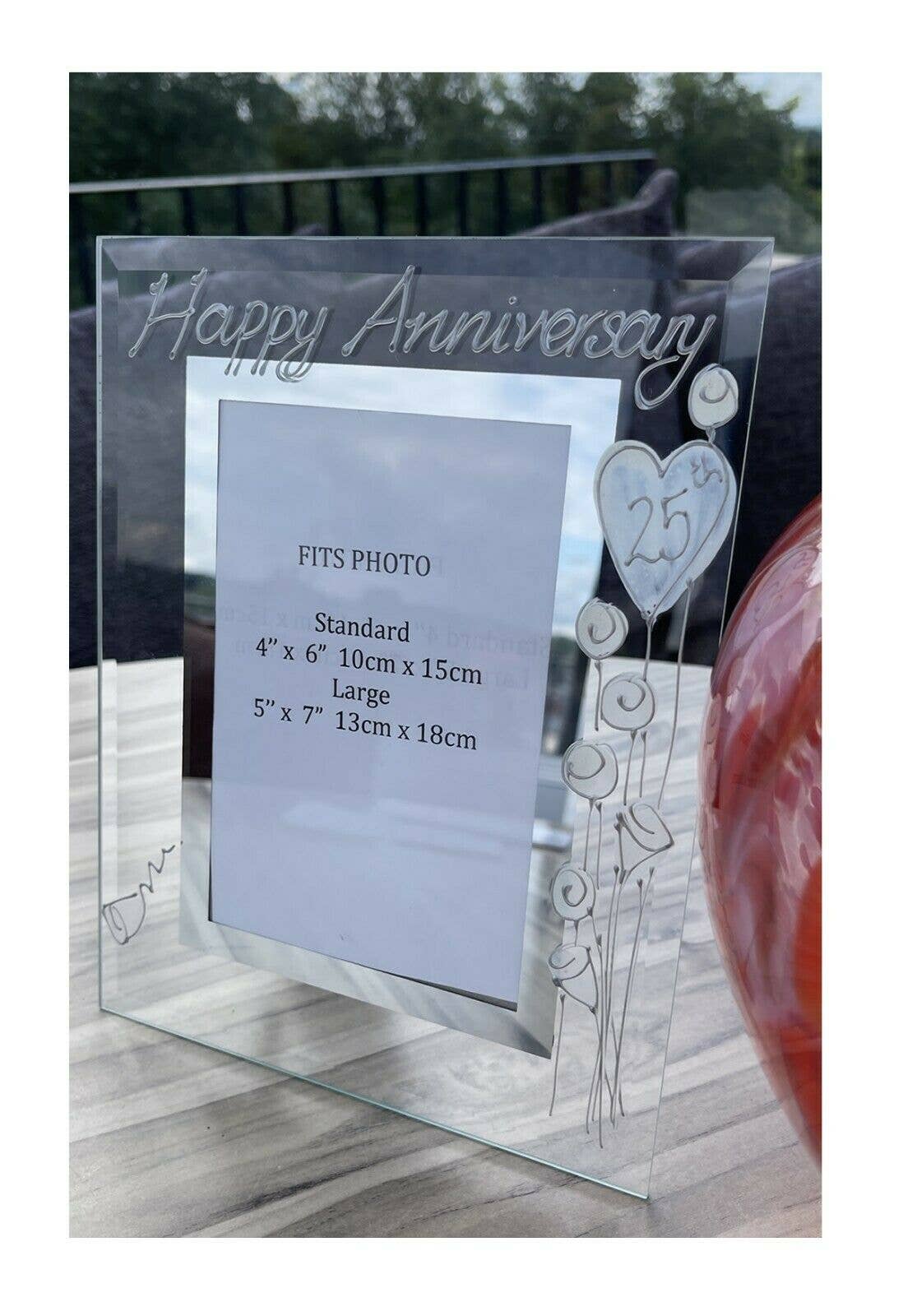 The 60th Wedding Anniversary is also known as Diamond Wedding. Our Dreamair® photo frames are hand painted in our studio in Stoke on Trent. Clear glass frames with a mirrored inset border hand painted on the glass using 3D liner - you can feel the difference - in three fabulous styles: Hearts/Flowers - with infills of colour sympathetic to the anniversary Milestone - the named anniversary infilled with crystals Black/Siver - bold contemporary stylishly simple Available in 2 sizes and two formats landscape and portrait. Clear glass photo frame Hand painted in the UK at our studio in Stoke on Trent Standard Portrait Frame holds a 10cm x 15cm (4" x 6") photo Large Portrait Frame Holds a 13cm x 18cm (5" x 7") photo Standard Landscape Frame holds a 10cm x 15cm (6" x 4") photo Large Landscape Frame Holds a 18cm x 13cm (7" x 5") photo INDIVIDUALLY BOXED