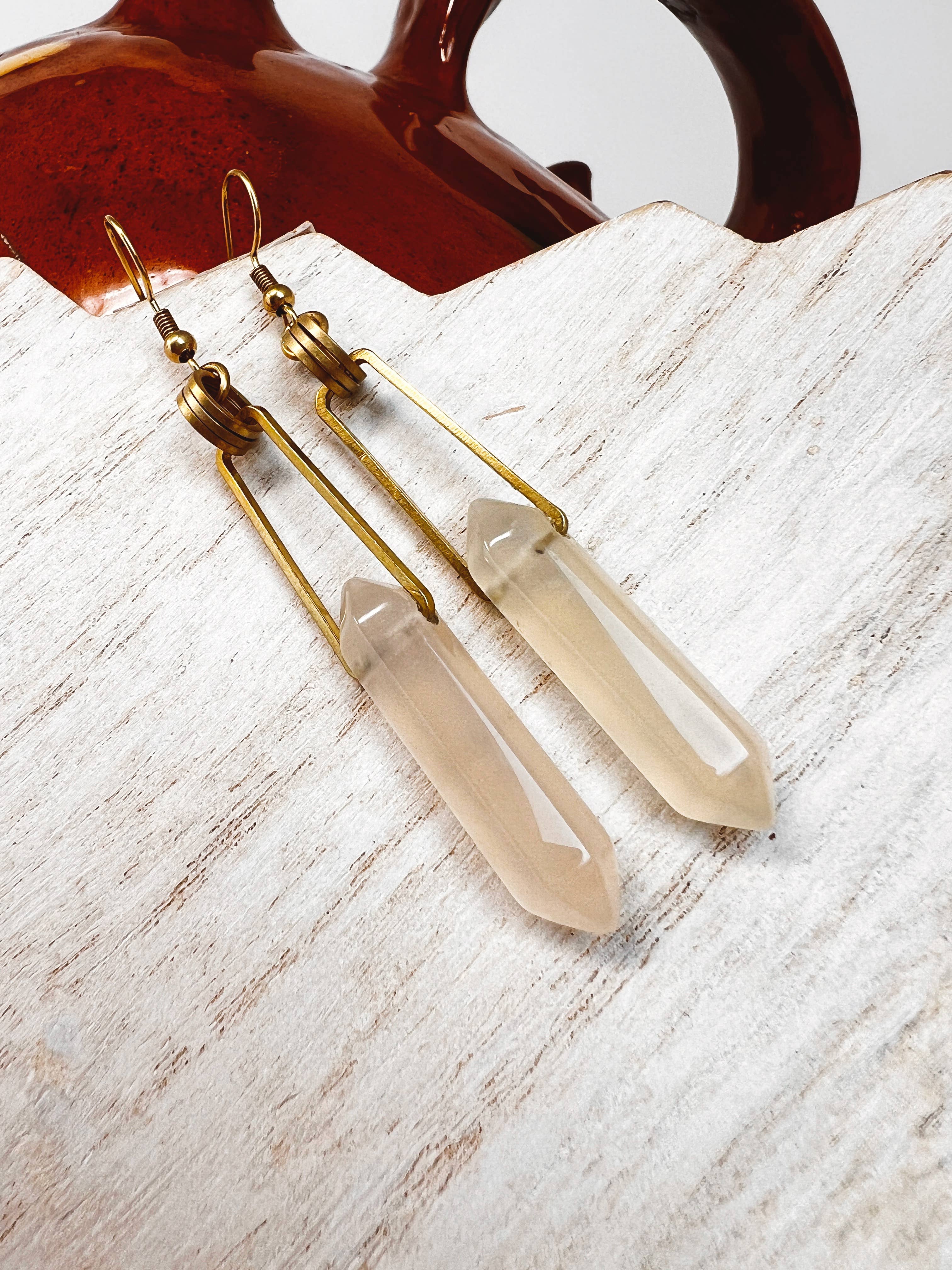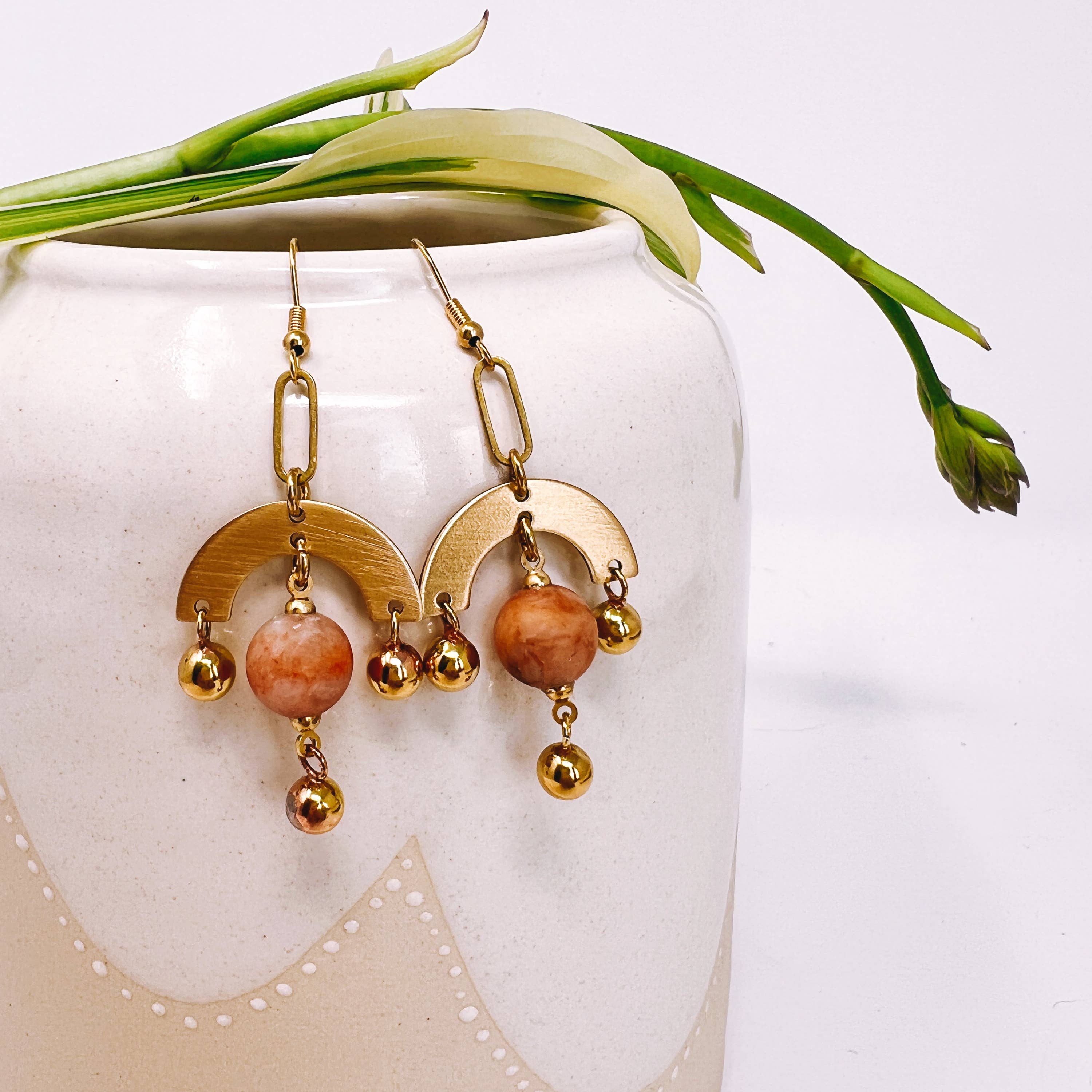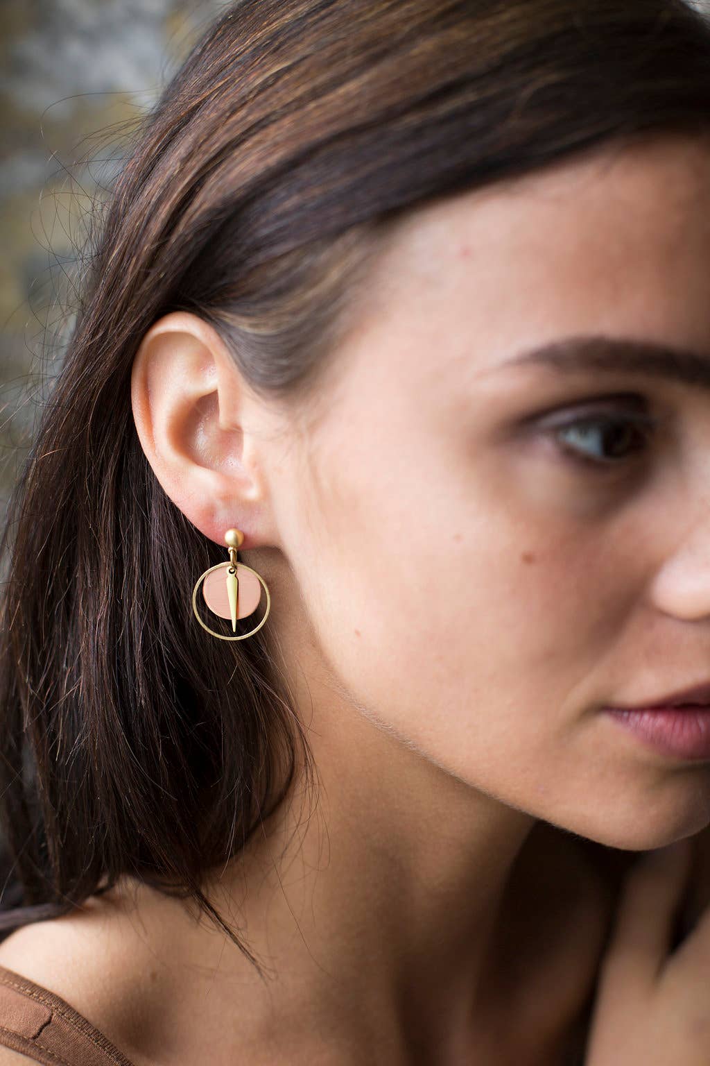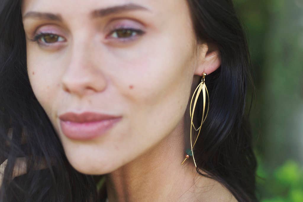Small Brass Post Earring With Hoop & Semi-Precious Stones