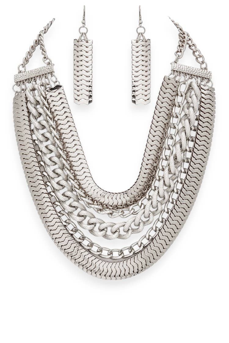 Fashion Crumpled Chain Link Necklace Earrings Set