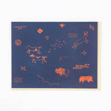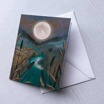 Includes: One A2 size greeting card that comes with one brown kraft envelope. - Card measures 4.25" x 5.5"(folded) 8.5" x 5.5" (open) - Blank on the inside - Heavy card stock (300gsm) produced from a renewable source - Made in USA - printed on-demand in Hudson Valley, New York - Envelope measures 4.375" x 5.75", brown craft paper, quick self seal - Packaged in a certified compostable clear bag