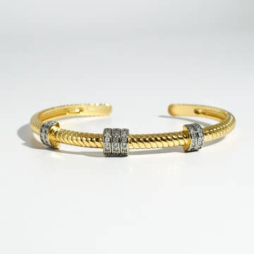 Gorgeous double cable cuff Two tone Full cut triple grade cz on the diagonal Rhodium plated