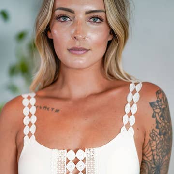 Made to order, handmade beaded bra top with silver steel chain straps and O-ring hardware. Beads are a mix of painted wood, freshwater pearls, vintage glass pearls, natural seashells, vintage glass beads and polished odd shape stones. SJ logo charm hangs from the center ring. Adjustable back with size settings. Laura is wearing the M-L C cup and shown flat are a M-L A cup and 3-4X E cup, which are more accurate sample of what you will get and has a few bead and shell additions. Handmade by us in house, with lots love:) *This is a made to order piece so please allow up to 2 weeks to produce. Size chart for adjustable band in last photo. Feel free to email us with specific measurement requests. Or for sizing notes, like shorter or longer straps etc., you can add info in the notes section at checkout<3